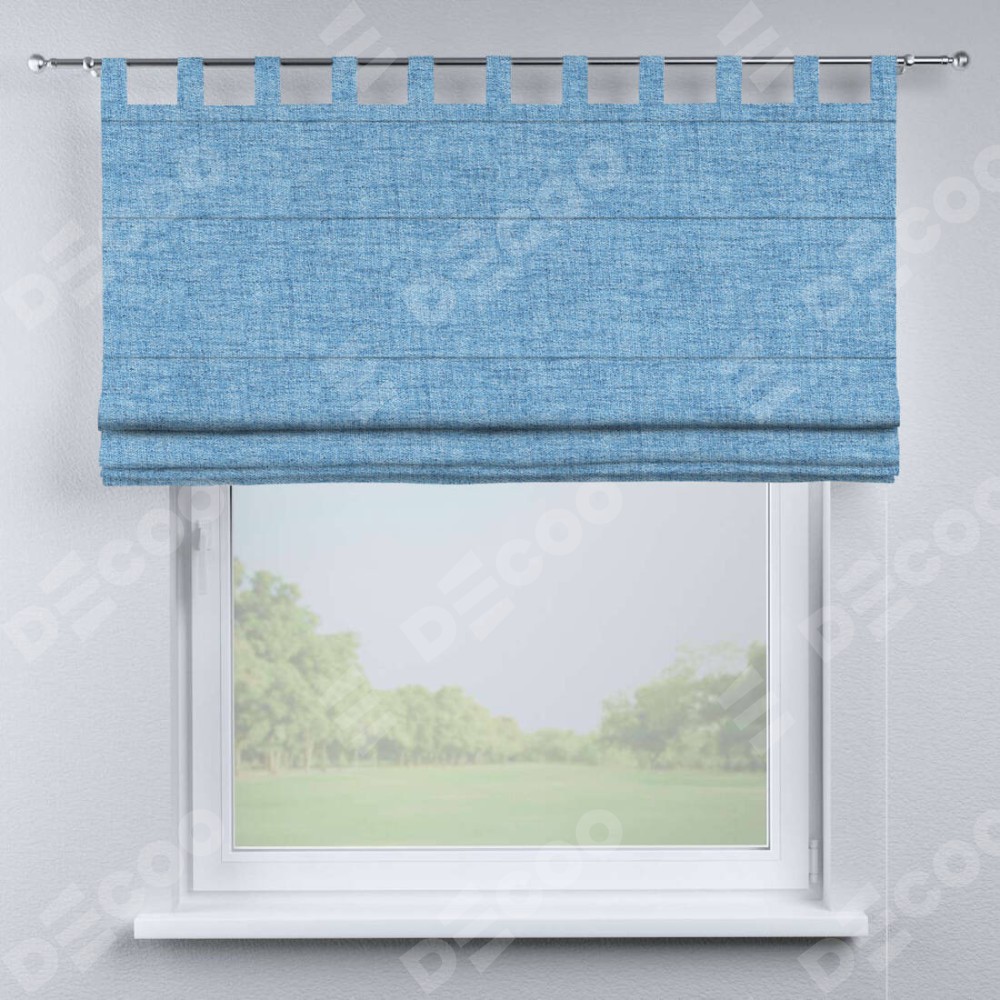 Римская штора «Кортин», рогожка димаут голубой, на петлях