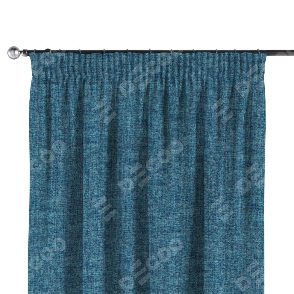 Комплект прямых штор, от производителя «Cortin», пошиты из ткани рогожка димаут лазурно-синий, артикул ткани 91024. С изнаночной стороны в верхней части штор пристрачивается шторная лента с декоративными складками «Карандаш». Для создания элегантных складок прямые шторы шьются по стандарту с коэффициентом 1:2 (на 100 см. ширины проёма 200 см. ширины ткани).