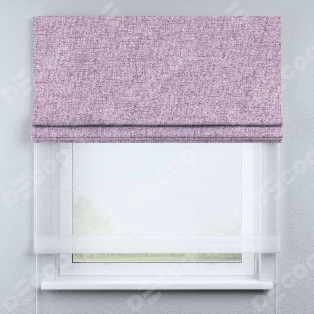 Двойная римская штора «День-ночь» от производителя Cortin предназначена для использования в проёмах. Эта штора уникальна тем, что состоит из двух полотен. На лицевой стороне находится рогожка димаут розовый (артикул: 91031), обеспечивающий эффективное затемнение. В комплект также входит вторая ткань — легкий белый тюль (артикул: V-01), который добавляет изящества и легкости оформлению окна. Кроме того, доступны и другие разновидности ткани тюль, выбор которых доступен по ссылке .