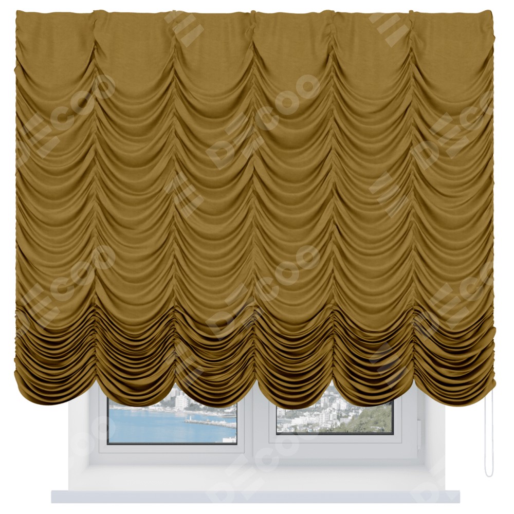 Французская штора производителя «Cortin», используется для проёма, пошита из ткани вельвет светло-коричневый, артикул ткани 4973. Имеет универсальный механизм и подходит для монтажа: на потолок и на стену.