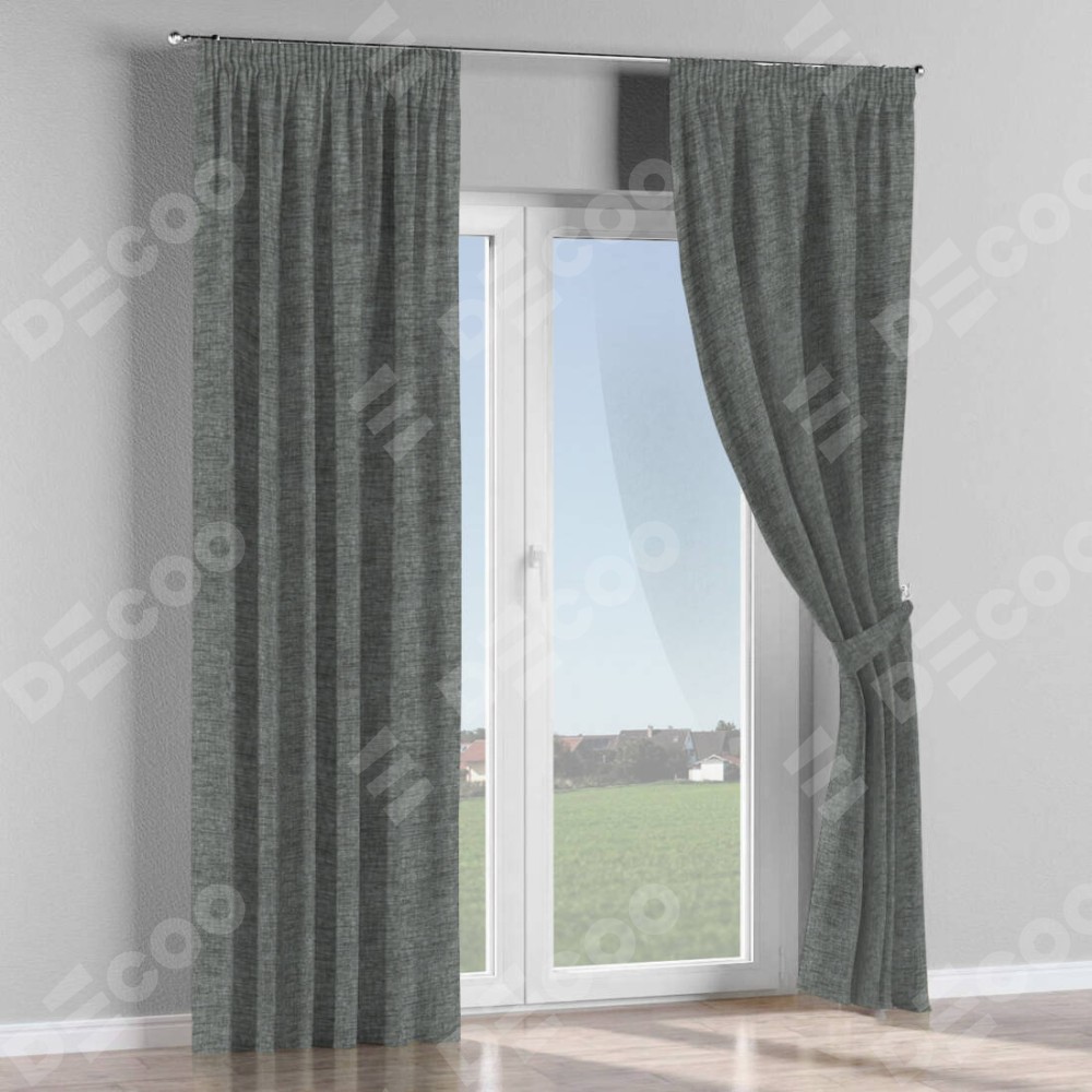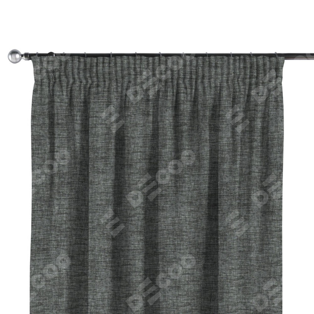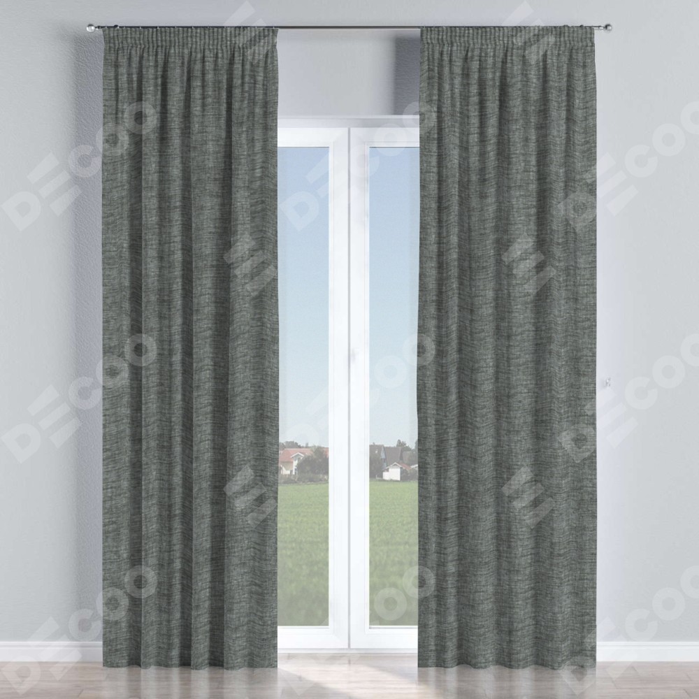 Комплект прямых штор, от производителя «Cortin», пошиты из ткани рогожка димаут тёмно-серый, артикул ткани 91029. С изнаночной стороны в верхней части штор пристрачивается шторная лента с декоративными складками «Карандаш». Для создания элегантных складок прямые шторы шьются по стандарту с коэффициентом 1:2 (на 100 см. ширины проёма 200 см. ширины ткани).