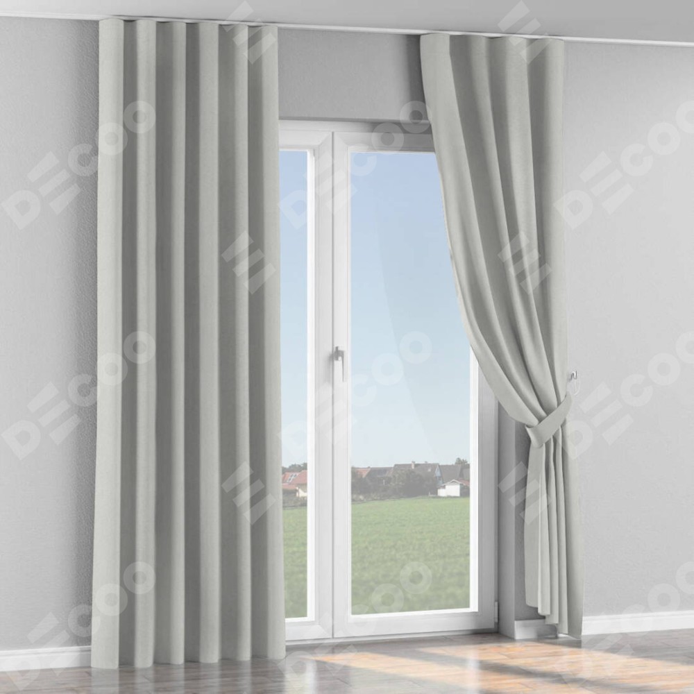 Комплект прямых штор, от производителя «Cortin», пошиты из ткани блэкаут однотонный милк, артикул ткани 23. С изнаночной стороны в верхней части штор пристрачивается шторная лента с декоративными складками «Волна». Для создания элегантных складок прямые шторы шьются по стандарту с коэффициентом 1:2 (на 100 см. ширины проёма 200 см. ширины ткани).