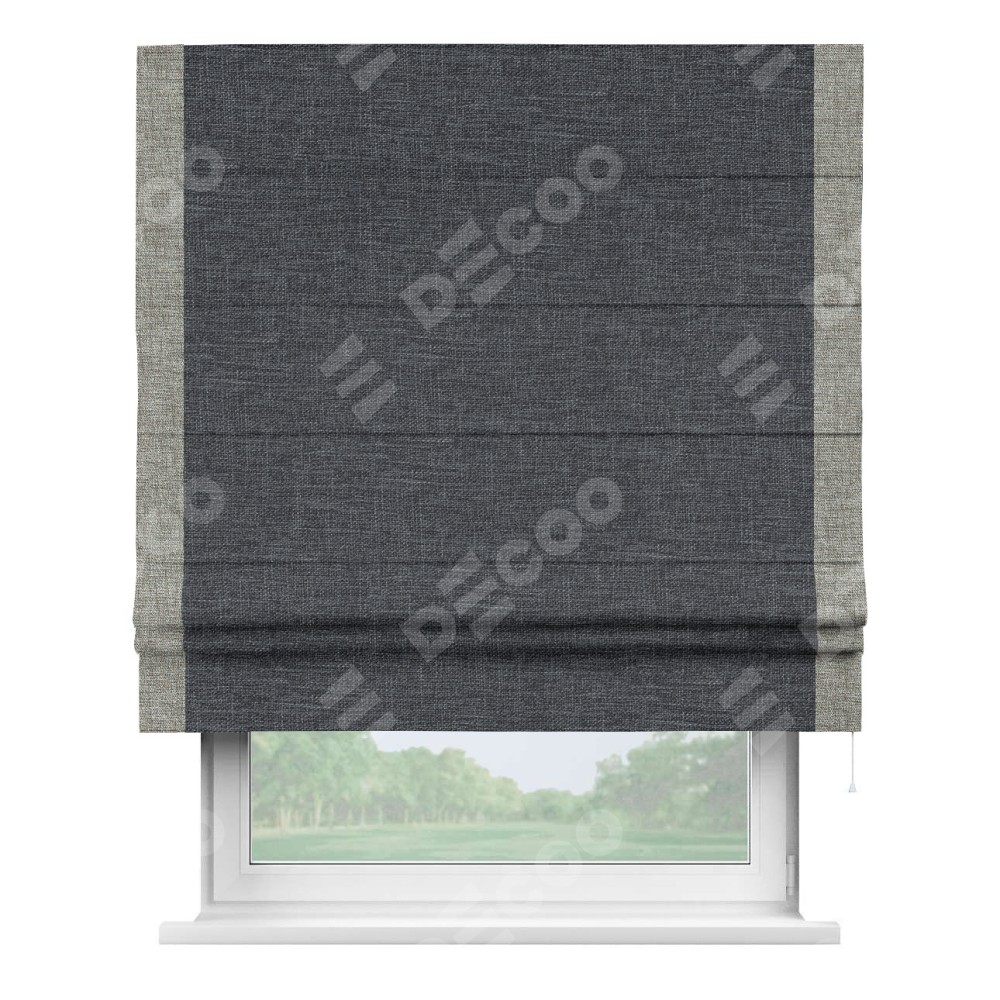 Римская штора «Кортин» для проёма, рогожка димаут графит, с кантом Стрим Дуо