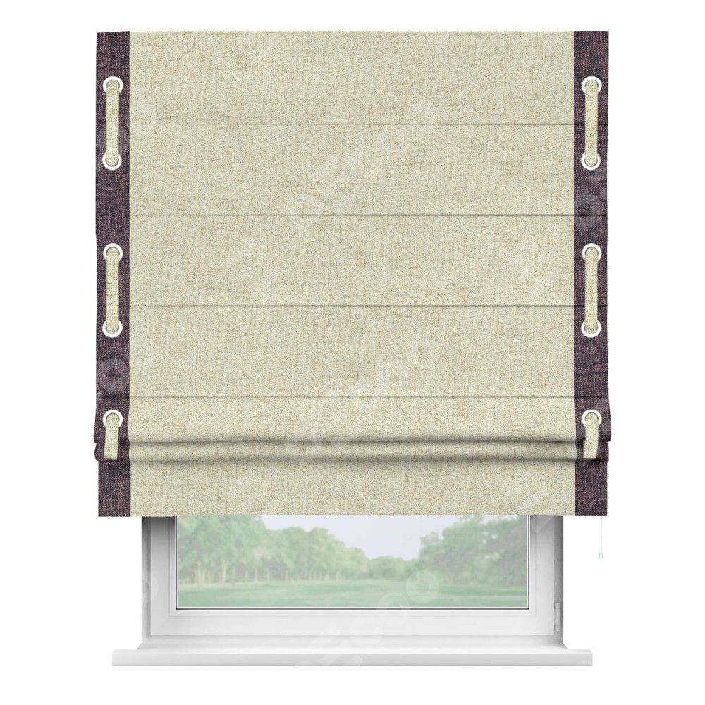 Декоративные люверсы на кантах могут выполнять как чисто украшательную функцию, так и быть частью механизма для протягивания декоративного пояска, что добавляет изделию уникальности и игривости. Поясок из основного цвета римской шторы, протянутый через люверсы, не только укрепляет вертикальную композицию, но и позволяет создавать различные драпировки, регулируя внешний вид шторы по желанию.