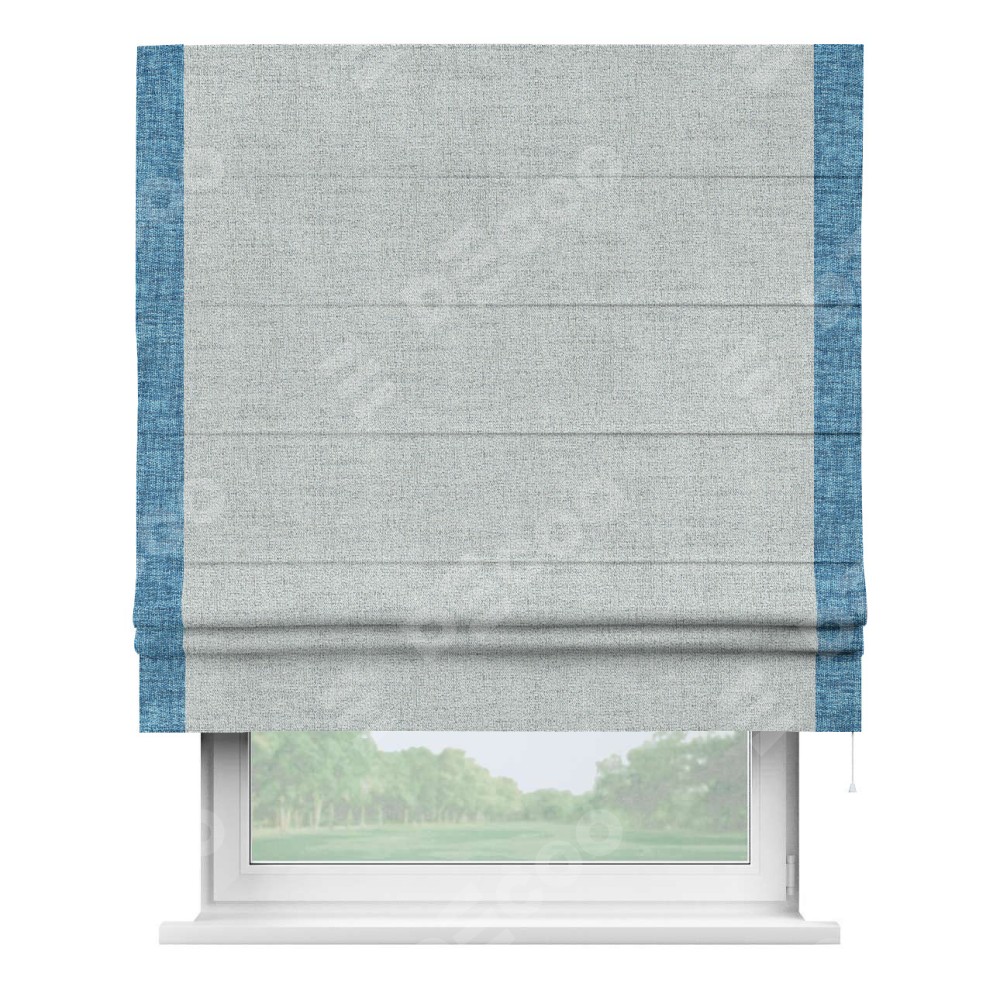 Римская штора «Кортин» для проёма, рогожка димаут серый, с кантом Стрим Дуо