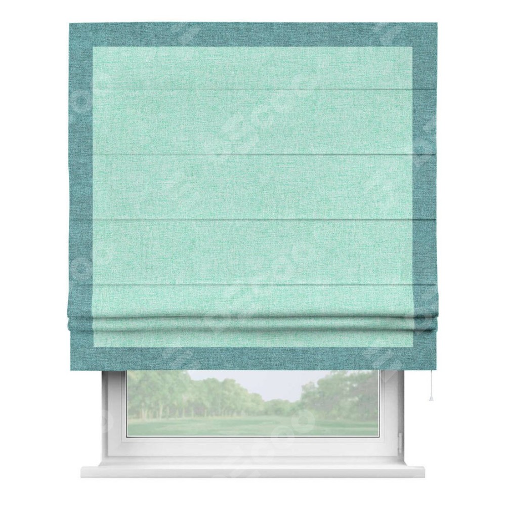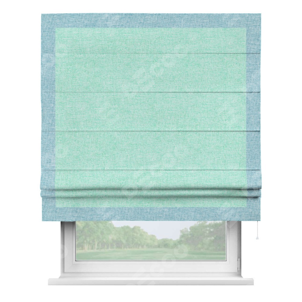 Римская штора пошита из ткани лён кашемир мятный, артикул: 21617, с отделкой кантом «Чесс» отличается своей уникальной деталью — наличием канта не только по бокам и снизу, но и сверху по всем краям шторы. Это придает шторе особенно аккуратный и завершенный вид, делая акцент на границах и форме шторы. Отделка кантом по всему периметру шторы усиливает её декоративные качества и подчеркивает строгую геометрию, что может быть особенно актуально для современных и минималистичных интерьеров.