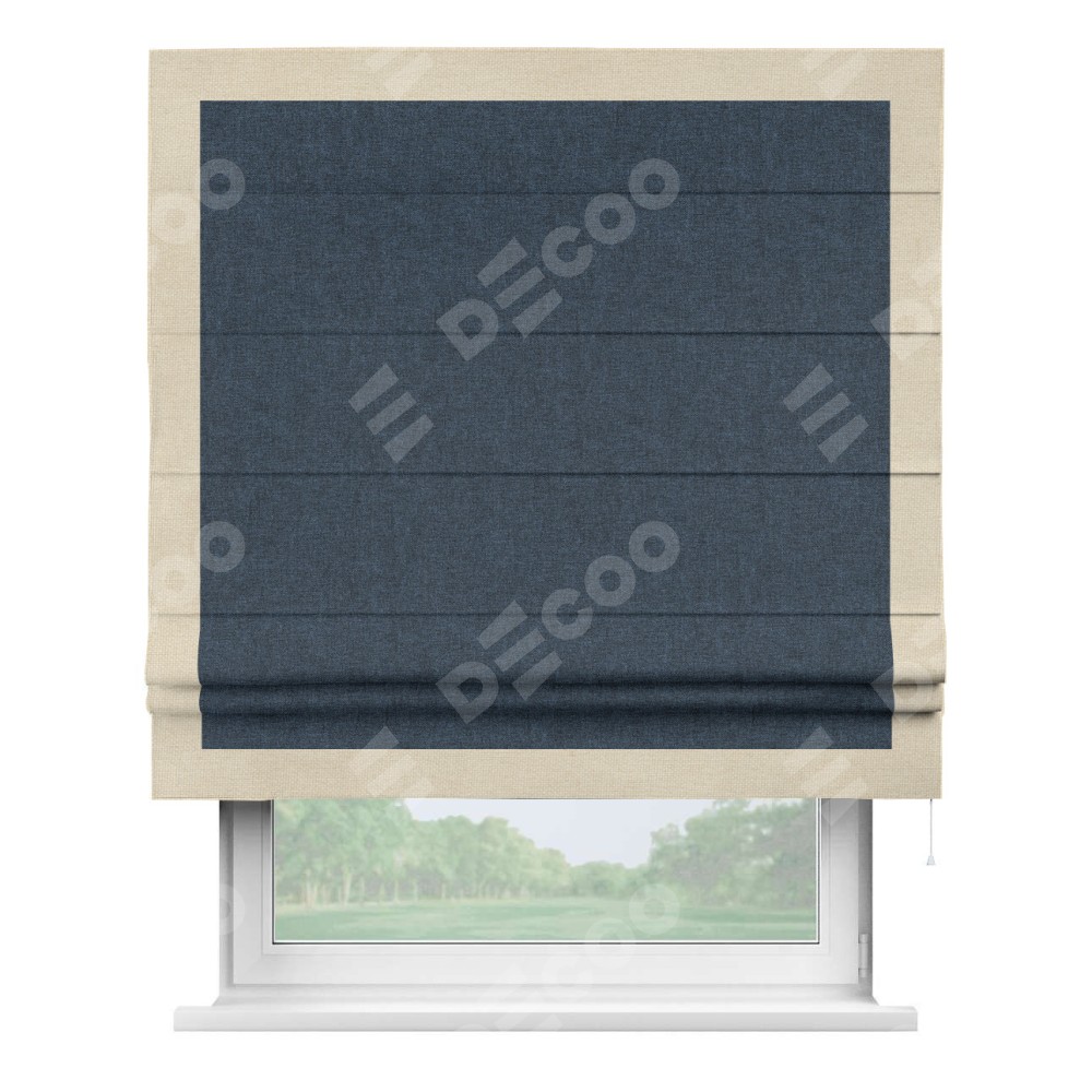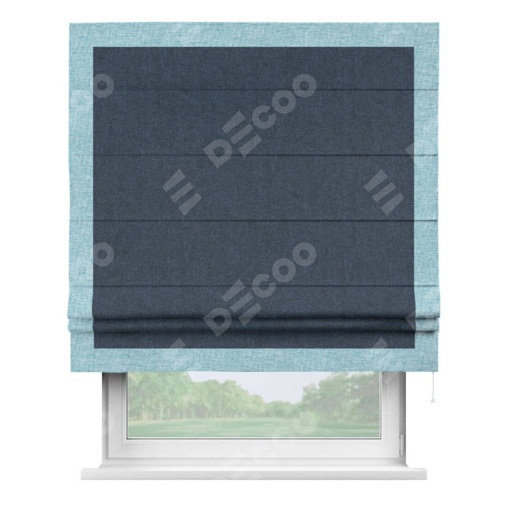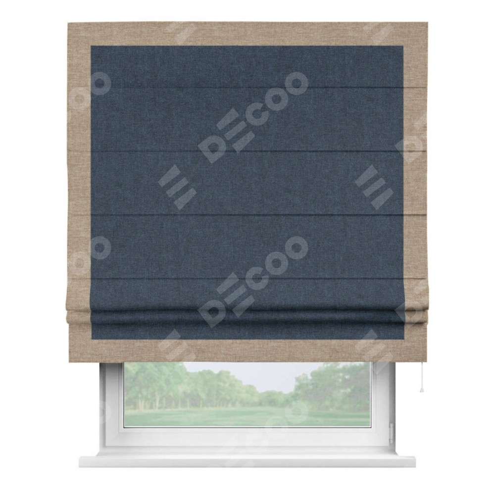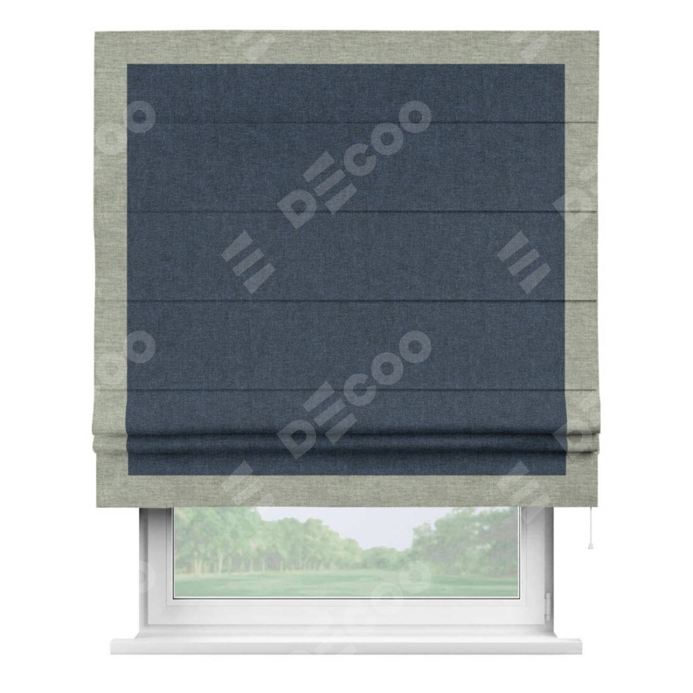 Римская штора «Кортин» для проёма, лён кашемир синий, с кантом Чесс