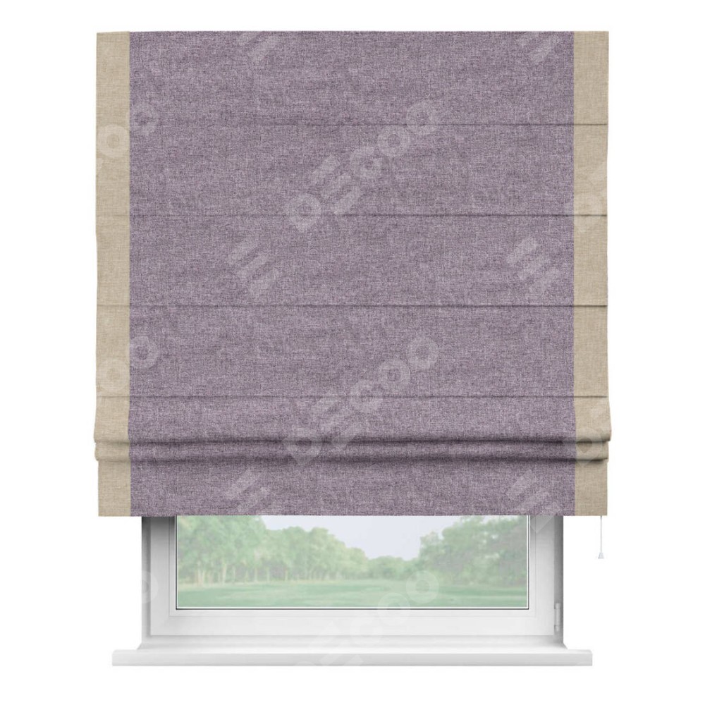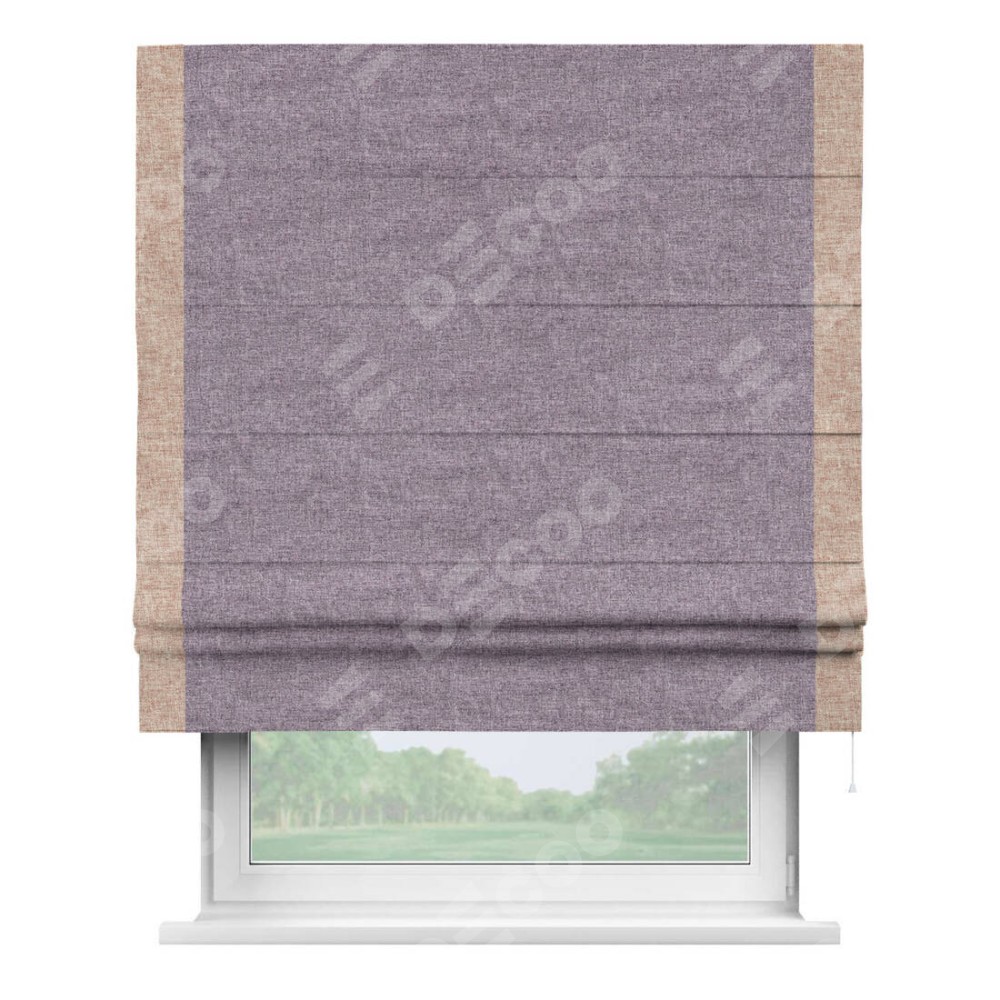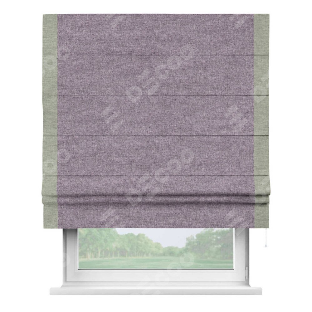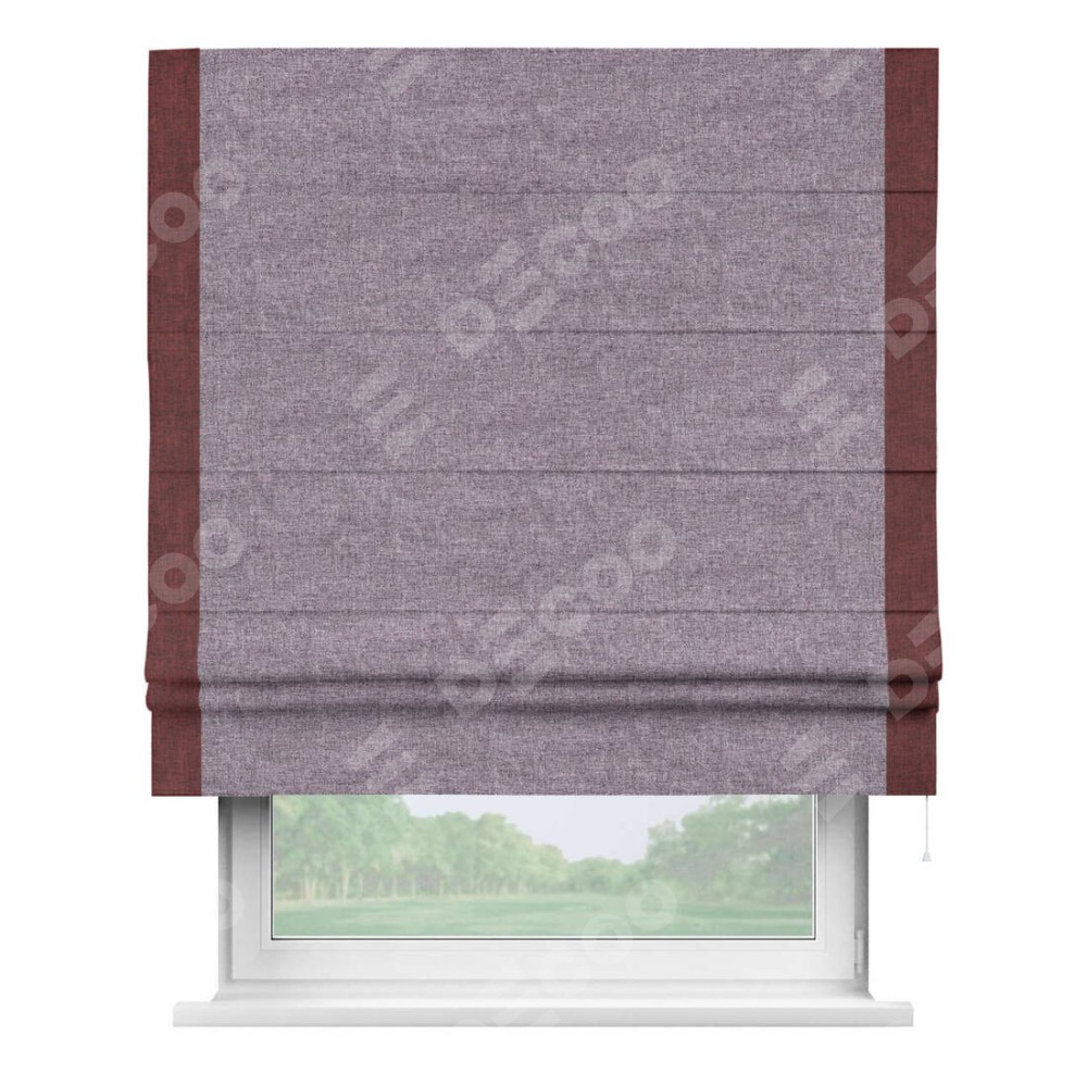 Римская штора «Кортин» для проёма, лён кашемир фиолетовый, с кантом Стрим Дуо