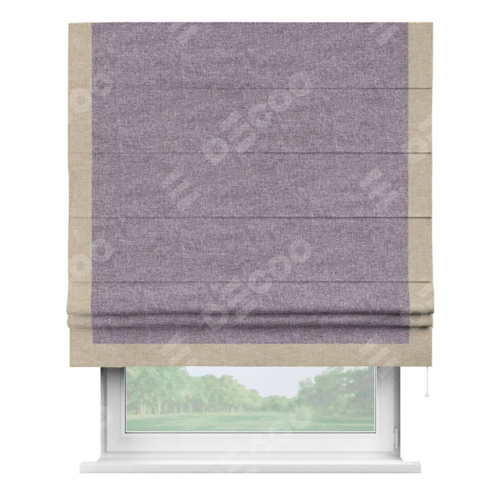 Римская штора с отделкой кантом «Виктория», пошита из ткани лён кашемир фиолетовый, артикул: 17211. представляет собой элегантное решение для оконного оформления. Кант по бокам и снизу шторы добавляет изысканности и аккуратности внешнему виду, подчеркивая линии и форму шторы. Этот элемент декора не только украшает, но и выполняет практическую функцию, защищая края ткани от износа. Кант может быть выполнен в контрастном или гармонирующем цвете, что позволяет добиться различных стилевых эффектов и легко вписать штору в интерьер комнаты.