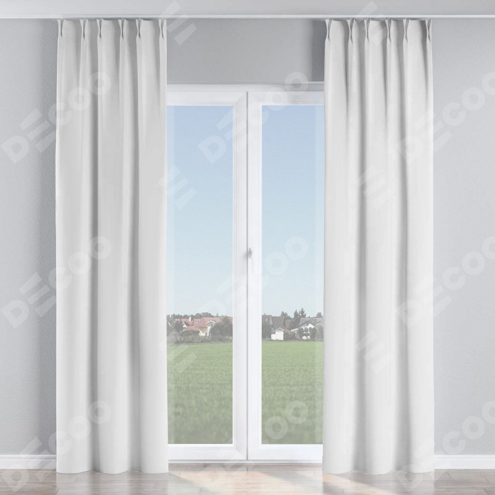 Комплект прямых штор, от производителя «Cortin», пошиты из ткани вайтаут однотонная белая, артикул ткани 93935. С изнаночной стороны в верхней части штор пристрачивается шторная лента с декоративными складками «Кустик». Для создания элегантных складок рекомендуемый коэффициент 1:2 (на 100 см. ширины проёма 200 см. ширины ткани). Важно! Ширина штор указана без учёта коэффициента сборки!