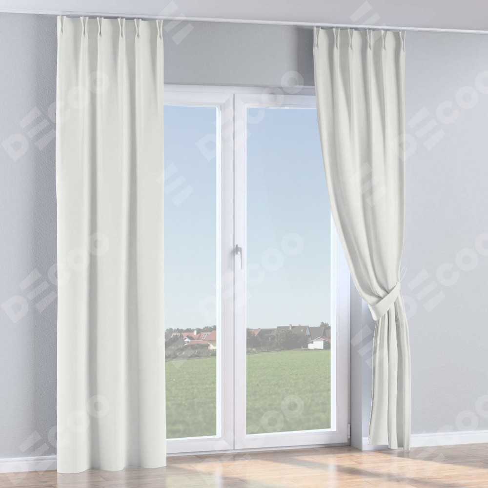 Комплект прямых штор, от производителя «Cortin», пошиты из ткани лён димаут молочный, артикул ткани 29. С изнаночной стороны в верхней части штор пристрачивается шторная лента с декоративными складками «Кустик». Для создания элегантных складок рекомендуемый коэффициент 1:2 (на 100 см. ширины проёма 200 см. ширины ткани). Важно! Ширина штор указана без учёта коэффициента сборки!