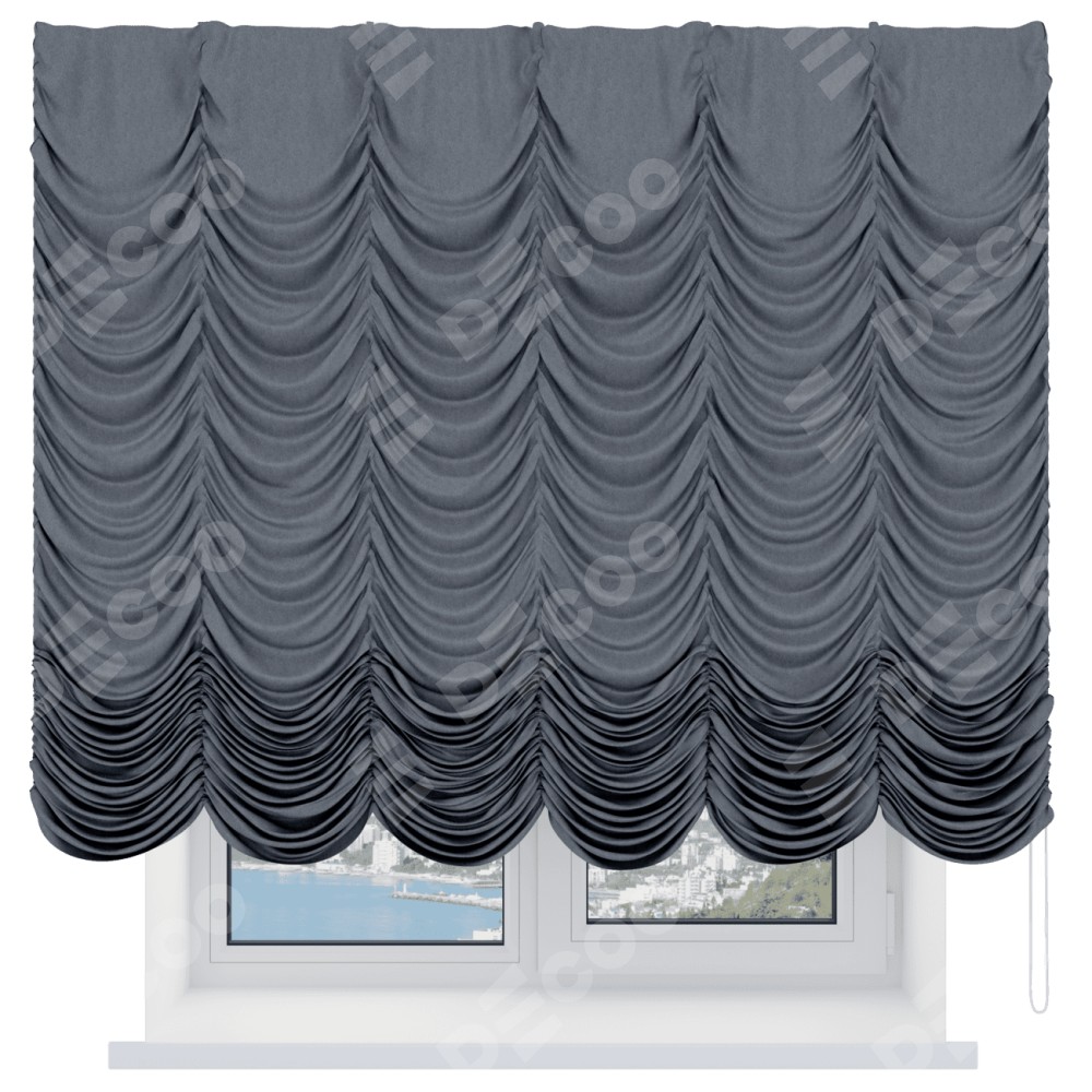 Французская штора производителя «Cortin», используется для проёма, пошита из ткани софт однотонный серый, артикул ткани 70605. Имеет универсальный механизм и подходит для монтажа: на потолок и на стену.