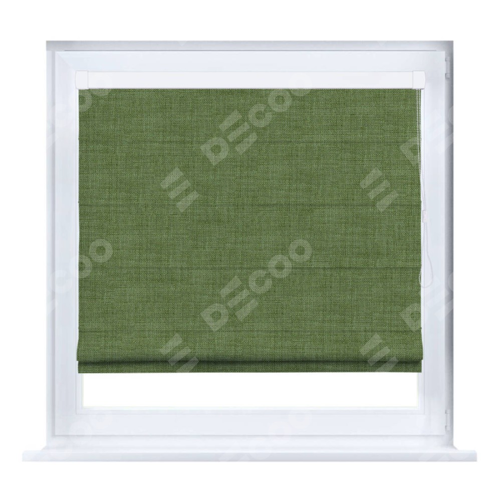 Римская штора производителя «Cortin», устанавливается на створку окна, пошита из ткани лён зелёный, артикул 131547. Штора шьётся по индивидуальным размерам, для данного типа римской шторы возможная ширина от 35 до 150 см., высота до 250 см.