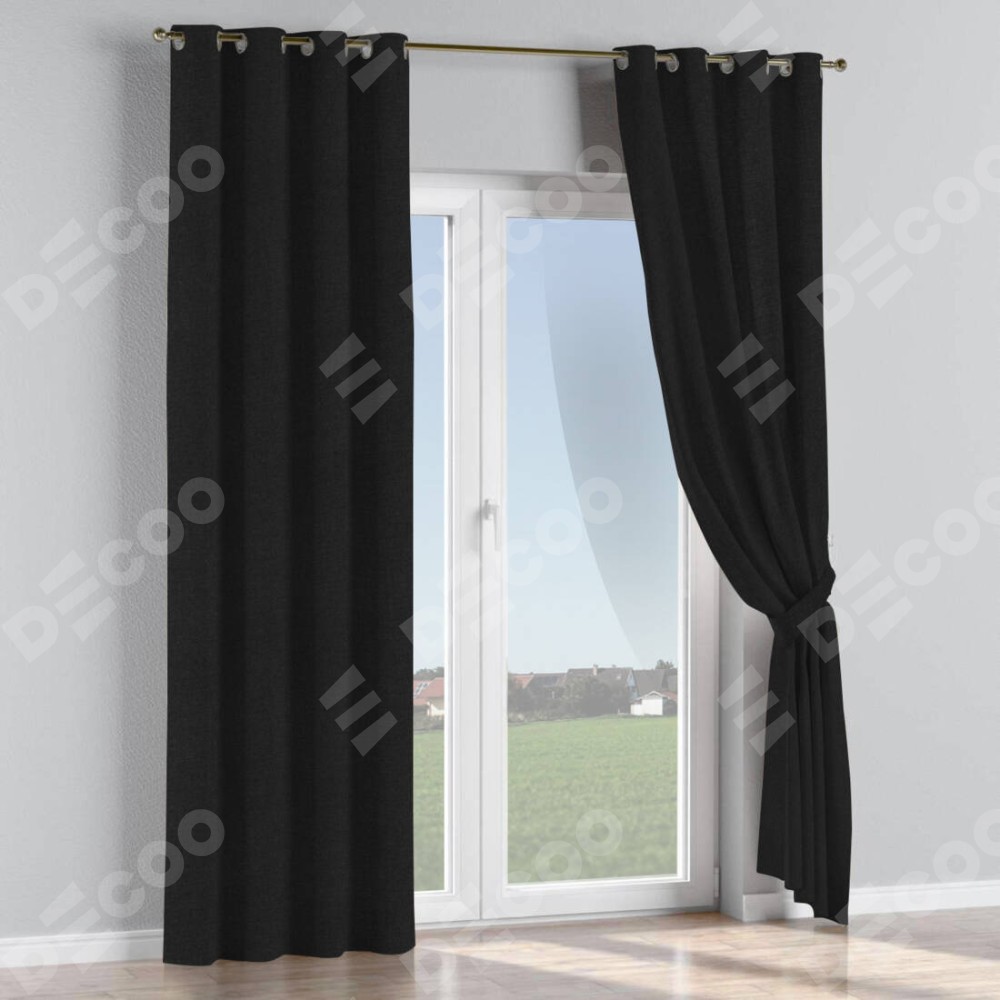 Комплект прямых штор, от производителя «Cortin», пошиты из ткани лён черный, артикул ткани 140815. Данная модель пошита на люверсах, комплектуется на выбор круглым карнизом и подходит для монтажа на стену или потолок. Для создания элегантных складок рекомендуемый коэффициент 1:2 (на 100 см. ширины проёма 200 см. ширины ткани). Важно! Ширина штор указана без учёта коэффициента сборки!