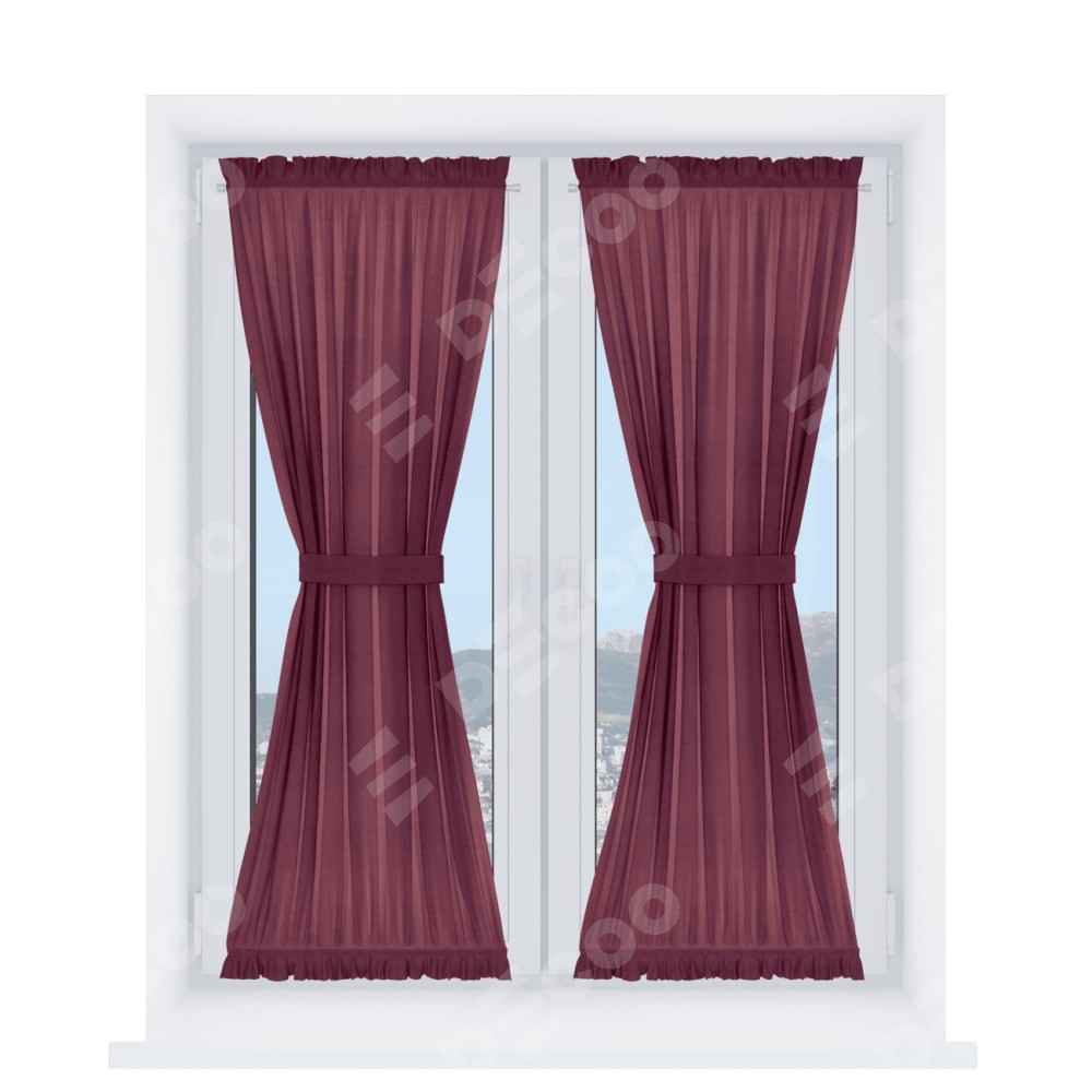 Штора «Песочные часы» производителя «Cortin», используется для створок окон и дверей, пошита из ткани вельвет бордовый, артикул ткани 85553.