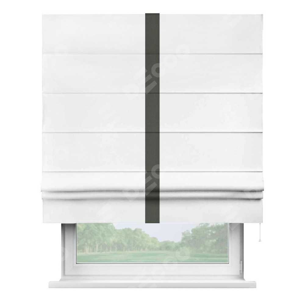 Римская штора «Кортин» для проёма, вайтаут однотонная белая с кантом Хайвэй