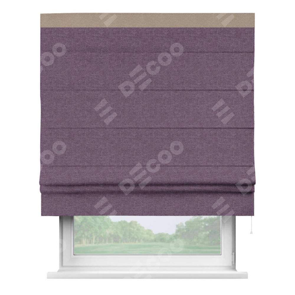 Римская штора производителя «Cortin», используется для проёма, пошита из ткани лён димаут брусника, артикул 16. Отделка шторы кантом «Кинг», ткань для канта используется из льна димаут разной расцветки на выбор. Имеет универсальный механизм и подходит для монтажа: на потолок, на стену и в нишу.