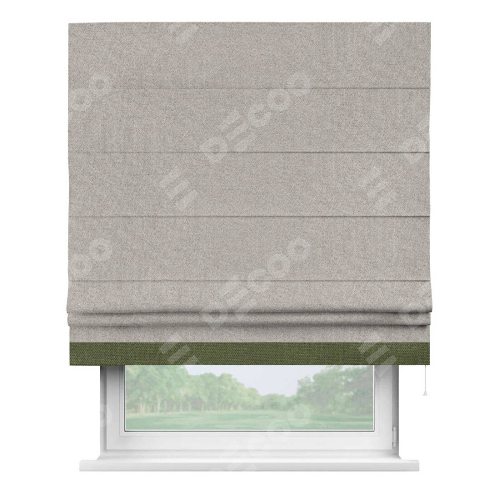 Римская штора «Кортин» для проема, лён димаут серо-бежевый с кантом Джестер