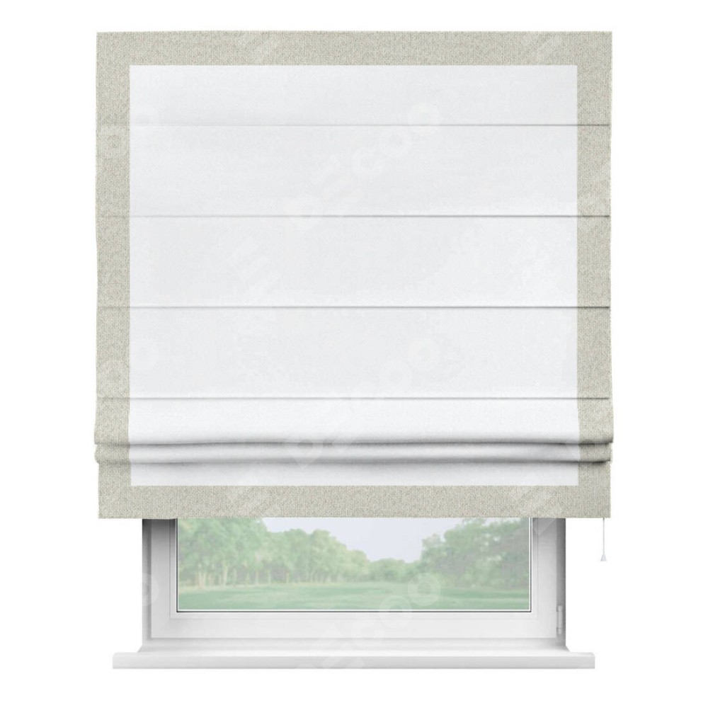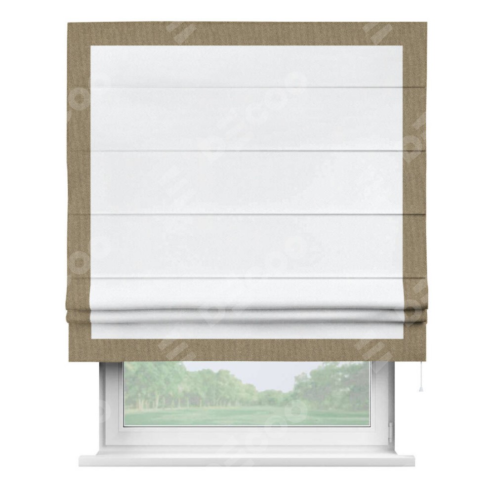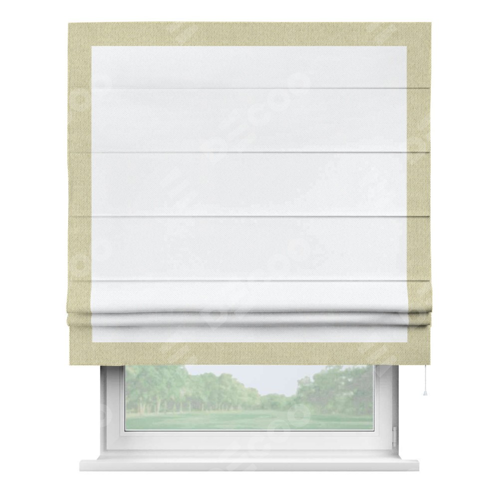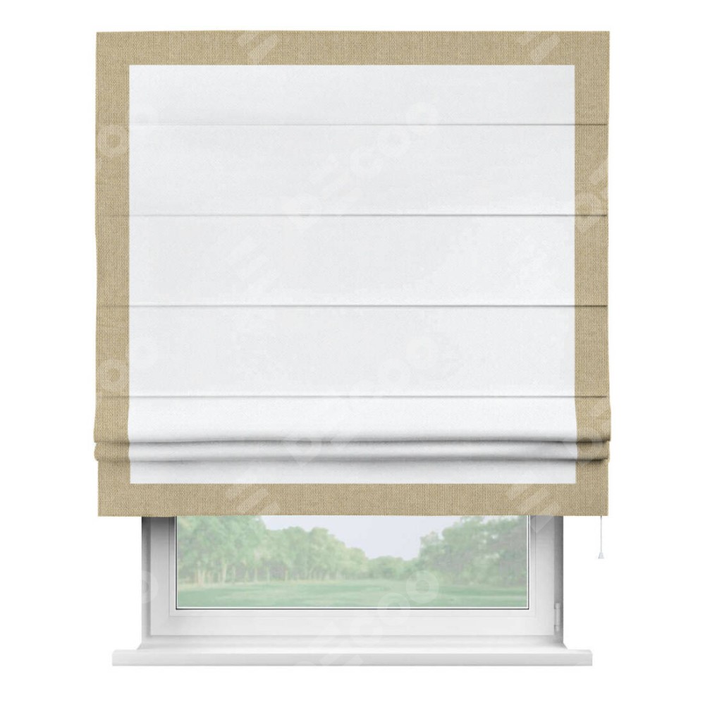 Римская штора «Кортин» для проема, лён димаут белый с кантом Чесс
