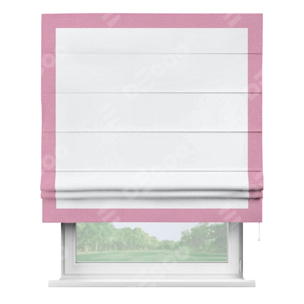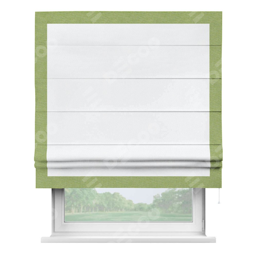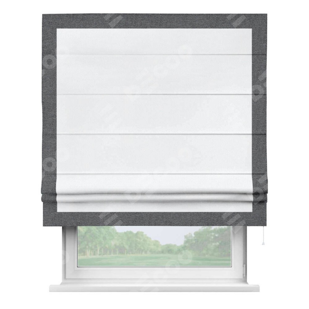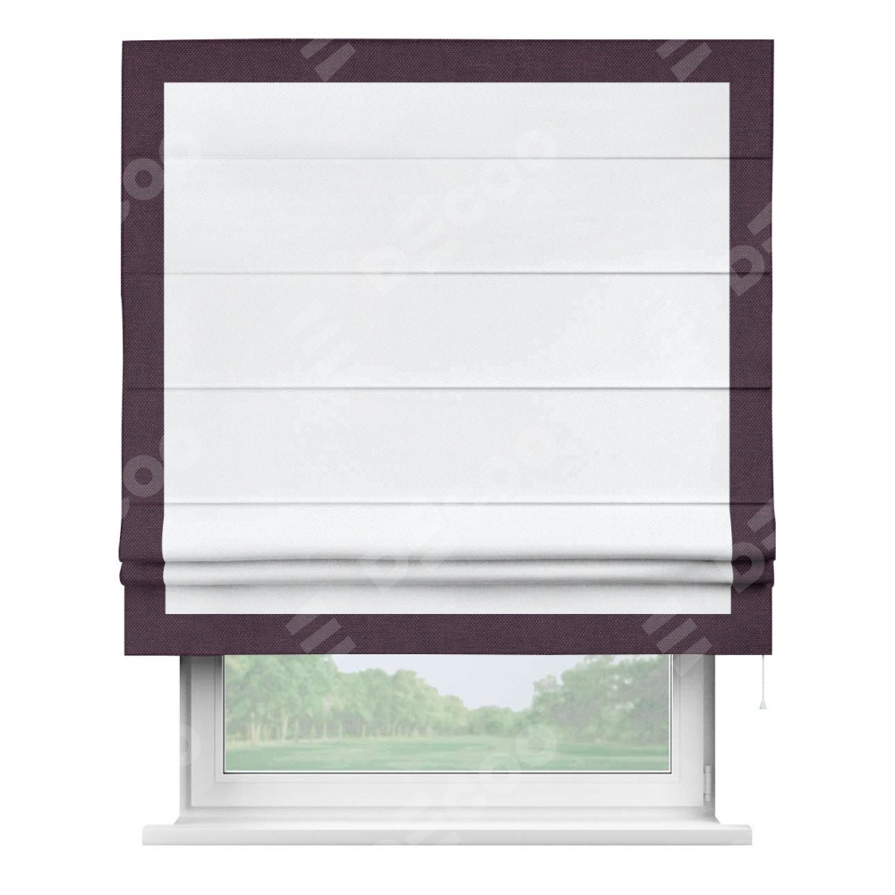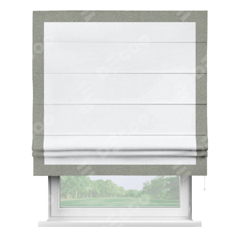 Римская штора «Кортин» для проема, лён димаут белый с кантом Чесс