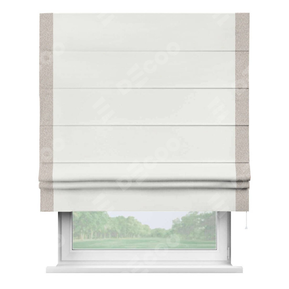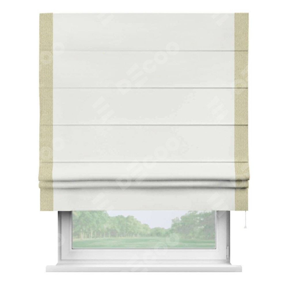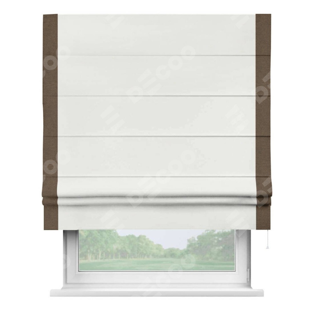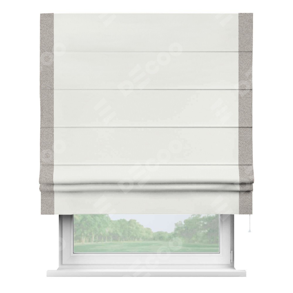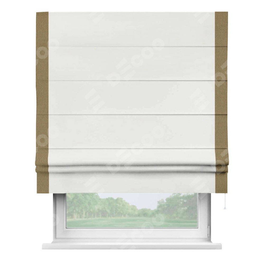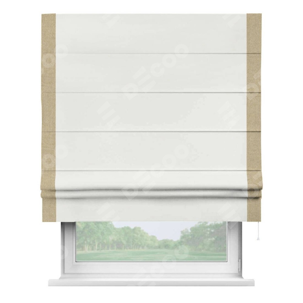 Римская штора «Кортин» для проема, лён димаут молочный с кантом Стрим Дуо