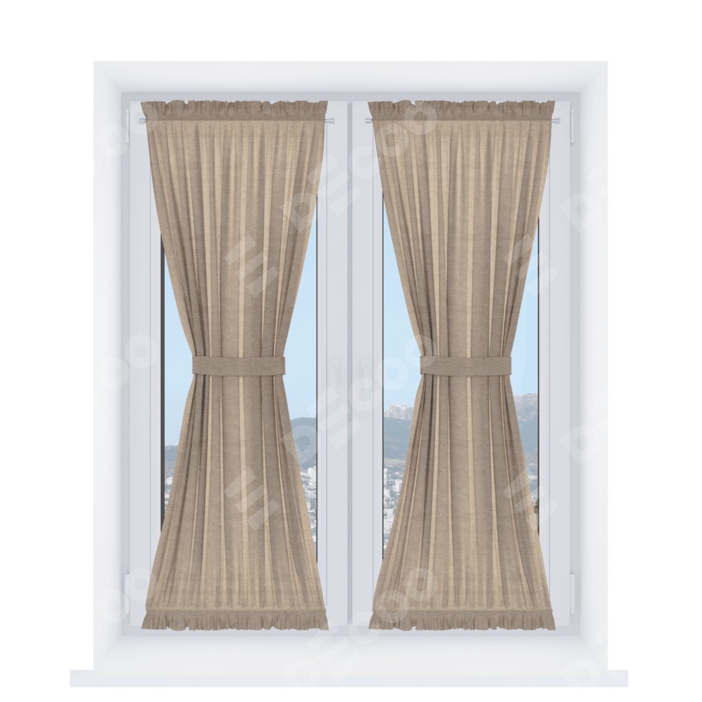 Штора «Песочные часы» производителя «Cortin», используется для створок окон и дверей, пошита из ткани лён кашемир коричневый, артикул ткани 21614.