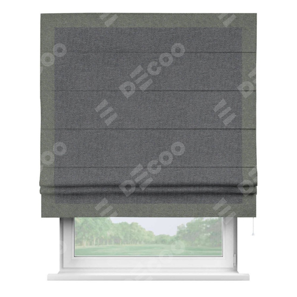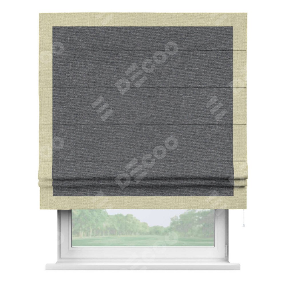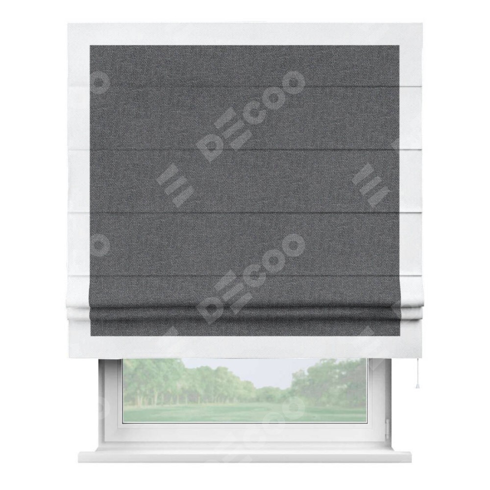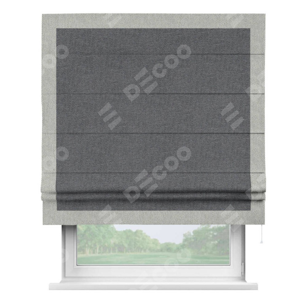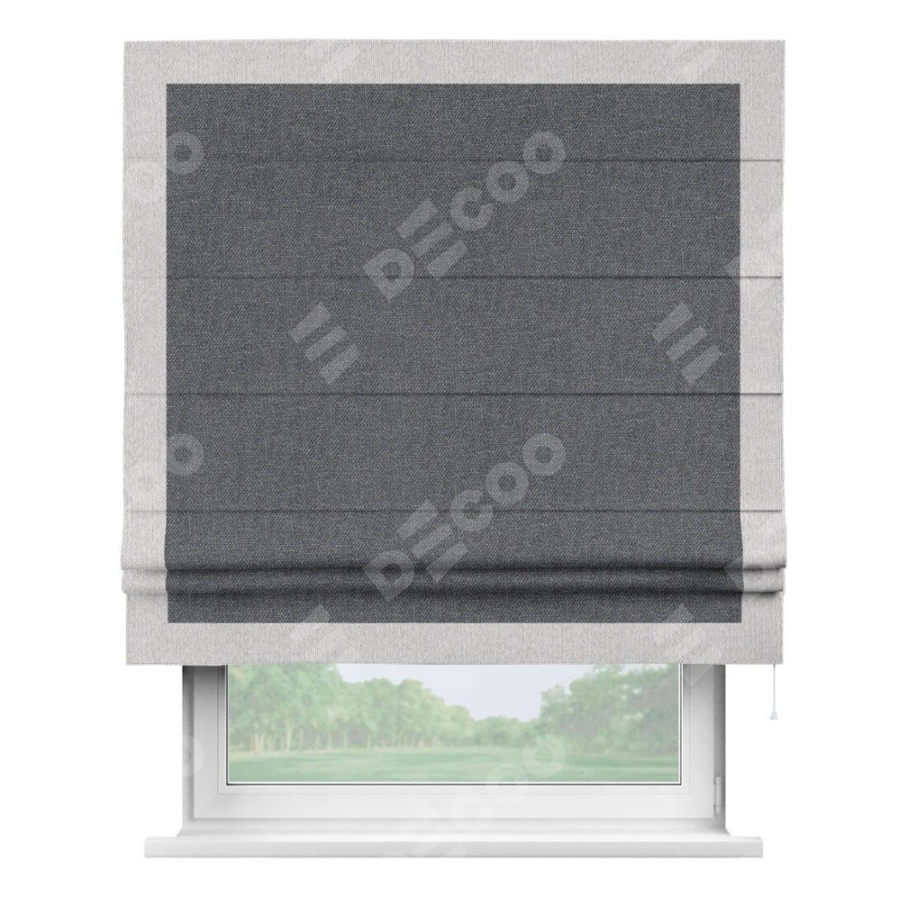 Классическая римская штора производителя «Cortin», пошита из ткани лён димаут графит, артикул: 140644. Имеет универсальный механизм и подходит для монтажа: на потолок, на стену и в нишу.