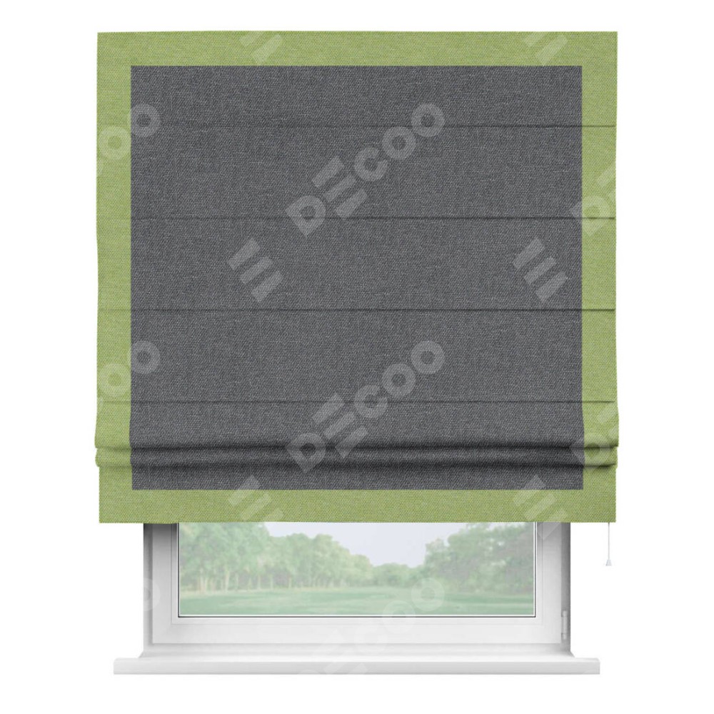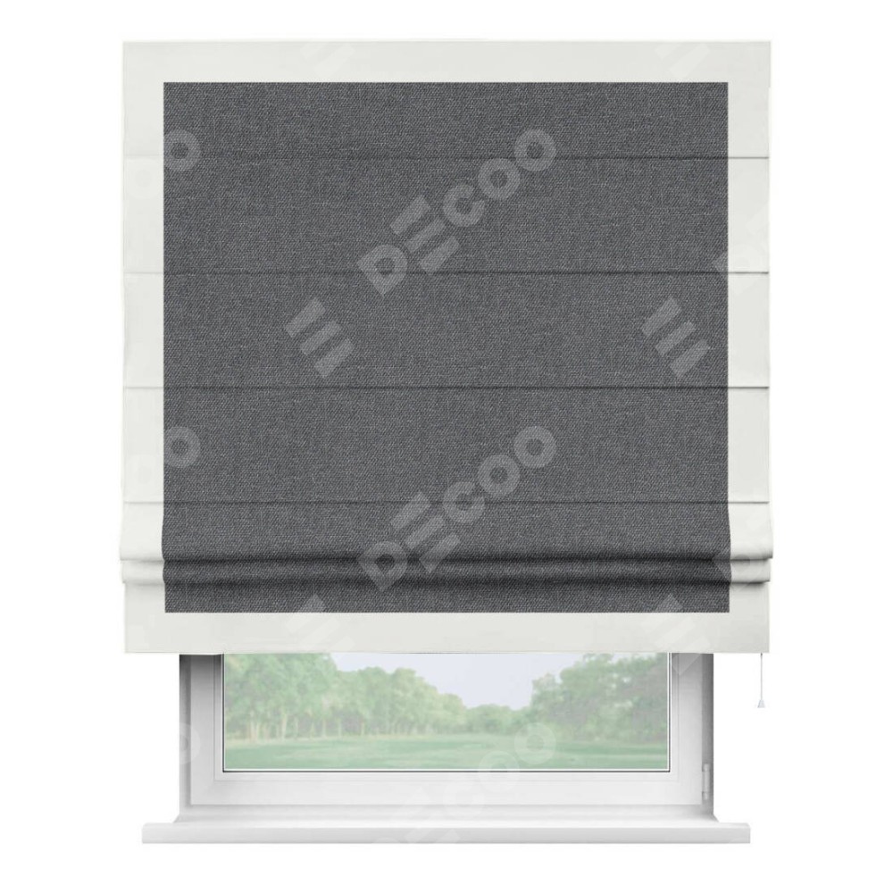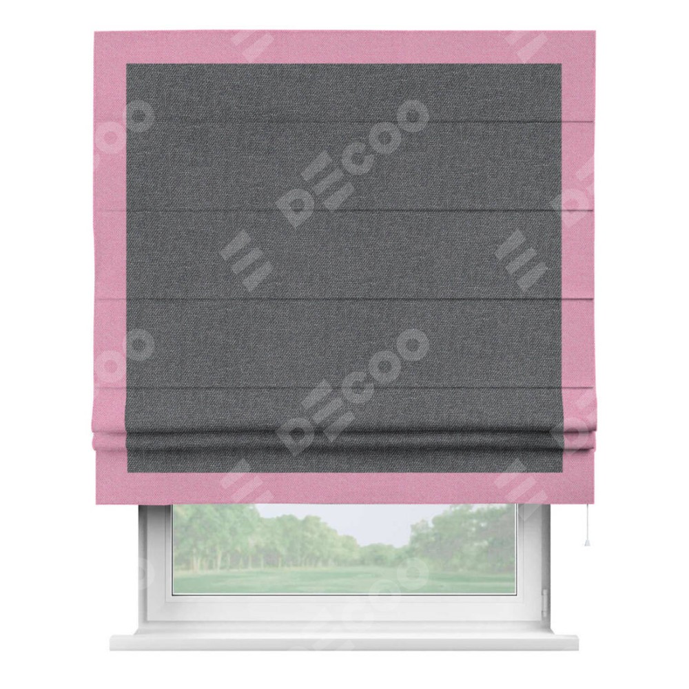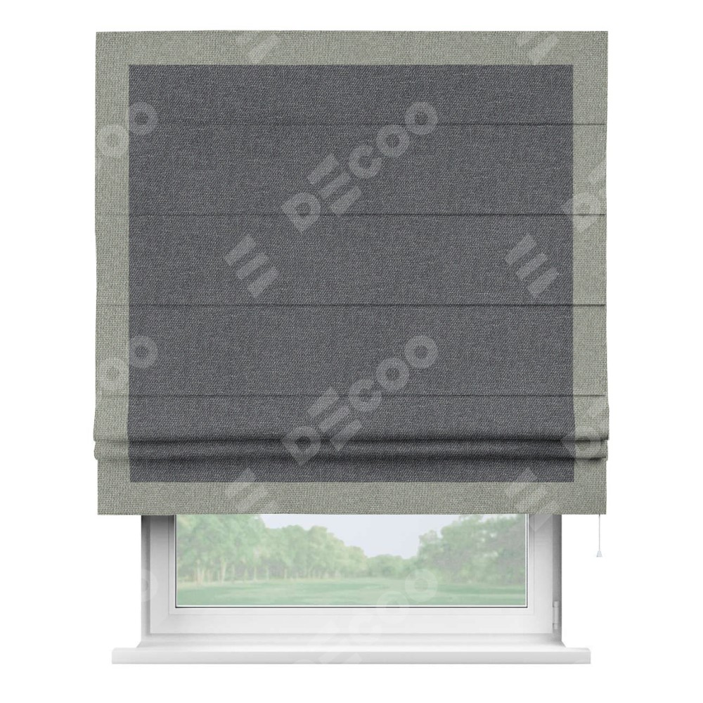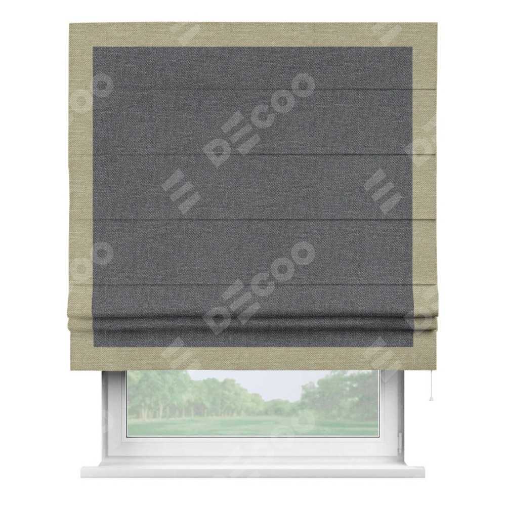 Классическая римская штора производителя «Cortin», пошита из ткани лён димаут графит, артикул: 140644. Имеет универсальный механизм и подходит для монтажа: на потолок, на стену и в нишу.