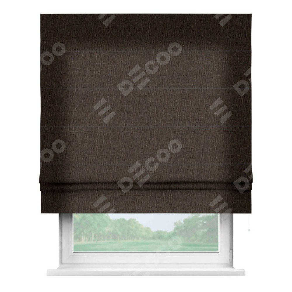 Классическая римская штора производителя «Cortin», пошита из ткани лён тёмно-коричневый, артикул: 104497. Имеет универсальный механизм и подходит для монтажа: на потолок, на стену и в нишу.