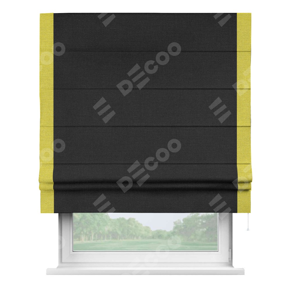 Римская штора «Кортин» для проёма, лён чёрный, с кантом Стрим Дуо