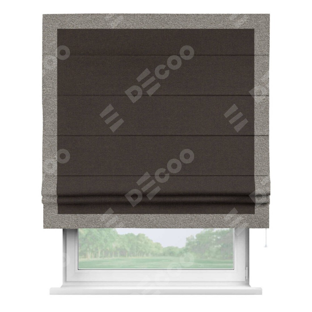 Классическая римская штора производителя «Cortin», пошита из ткани лён тёмно-коричневый, артикул: 104497. Имеет универсальный механизм и подходит для монтажа: на потолок, на стену и в нишу.