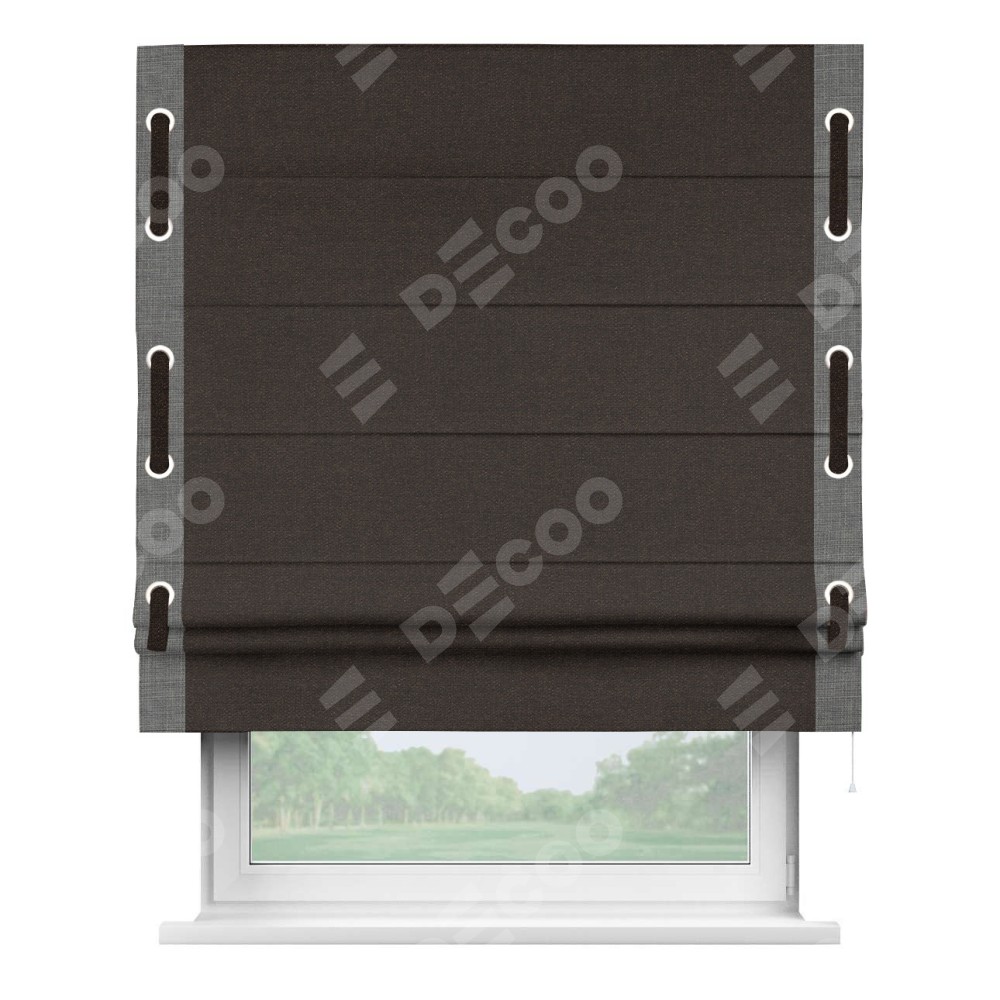 Римская штора «Кортин» для проёма, лён тёмно-коричневый, с кантом Стрим Дуо (люверсы с пояском)