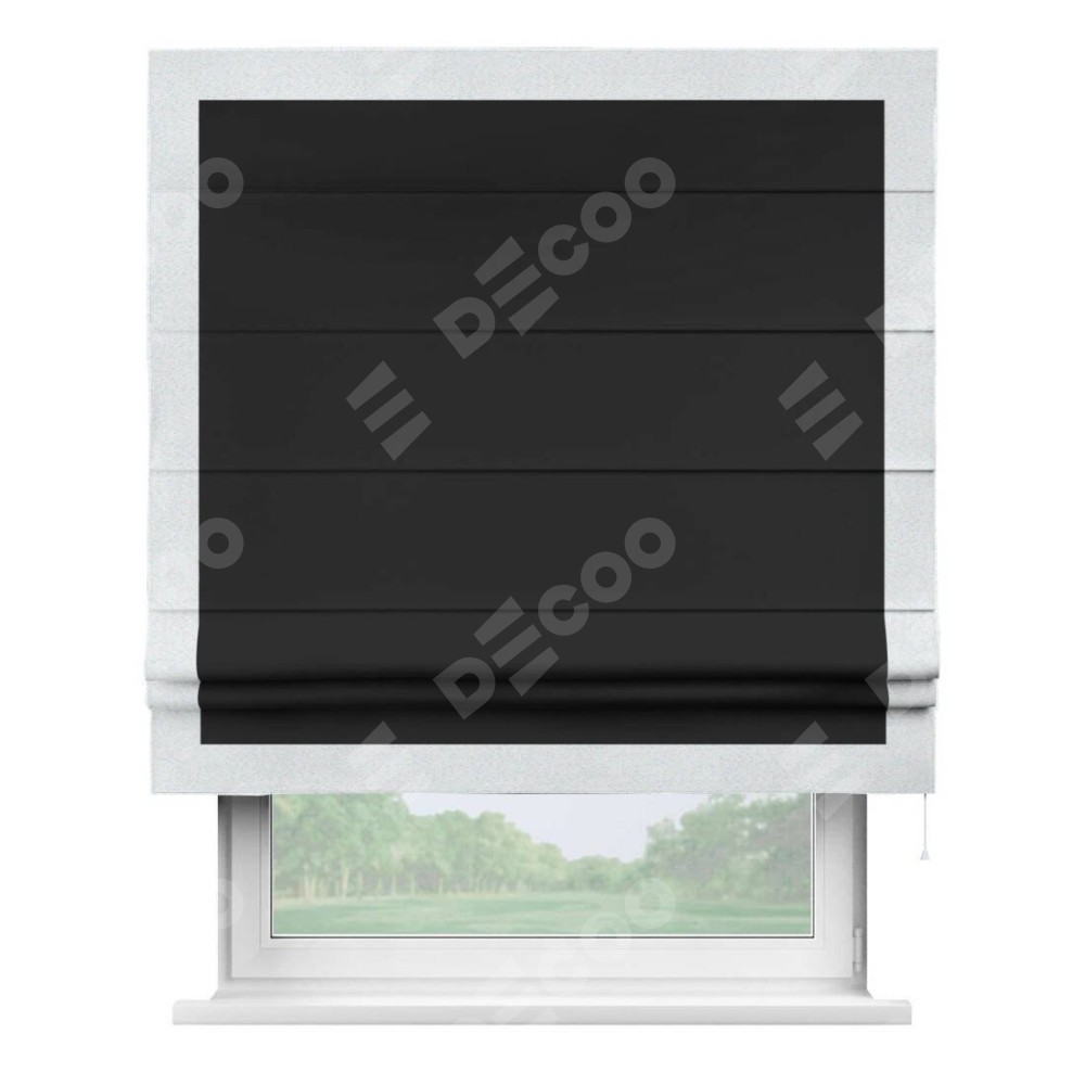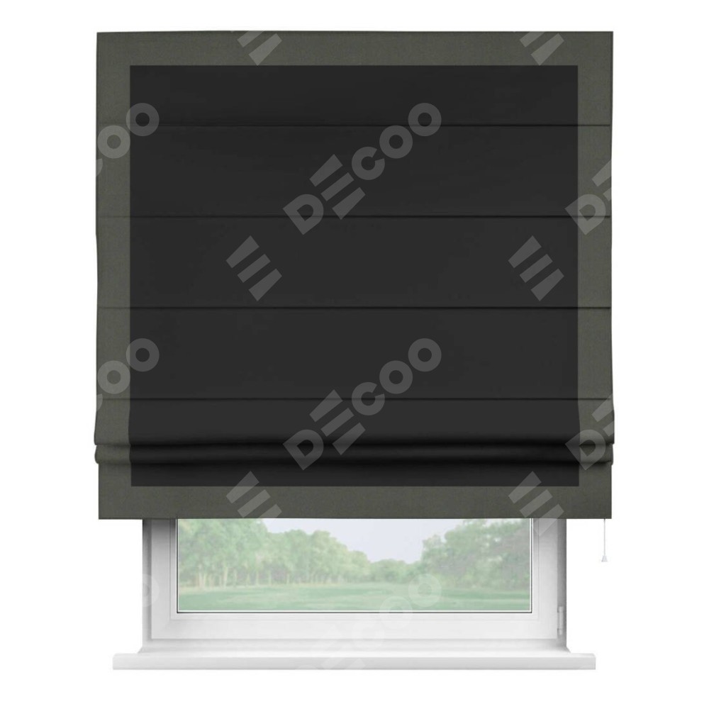 Классическая римская штора производителя «Cortin», пошита из ткани однотонный блэкаут черный, артикул: 37. Имеет универсальный механизм и подходит для монтажа: на потолок, на стену и в нишу.