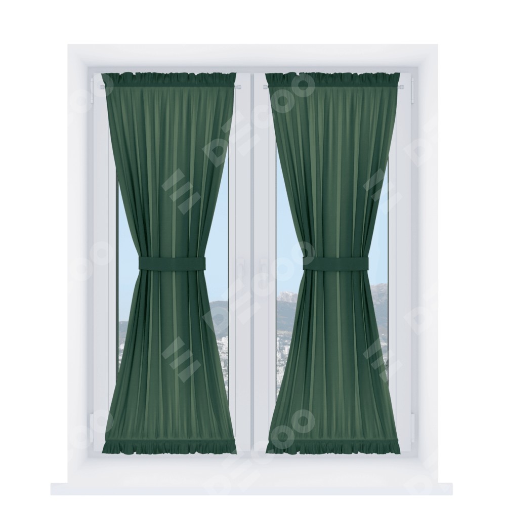 Штора «Песочные часы» производителя «Cortin», используется для створок окон и дверей, пошита из ткани лён димаут тёмно-зелёный, артикул ткани 16246.