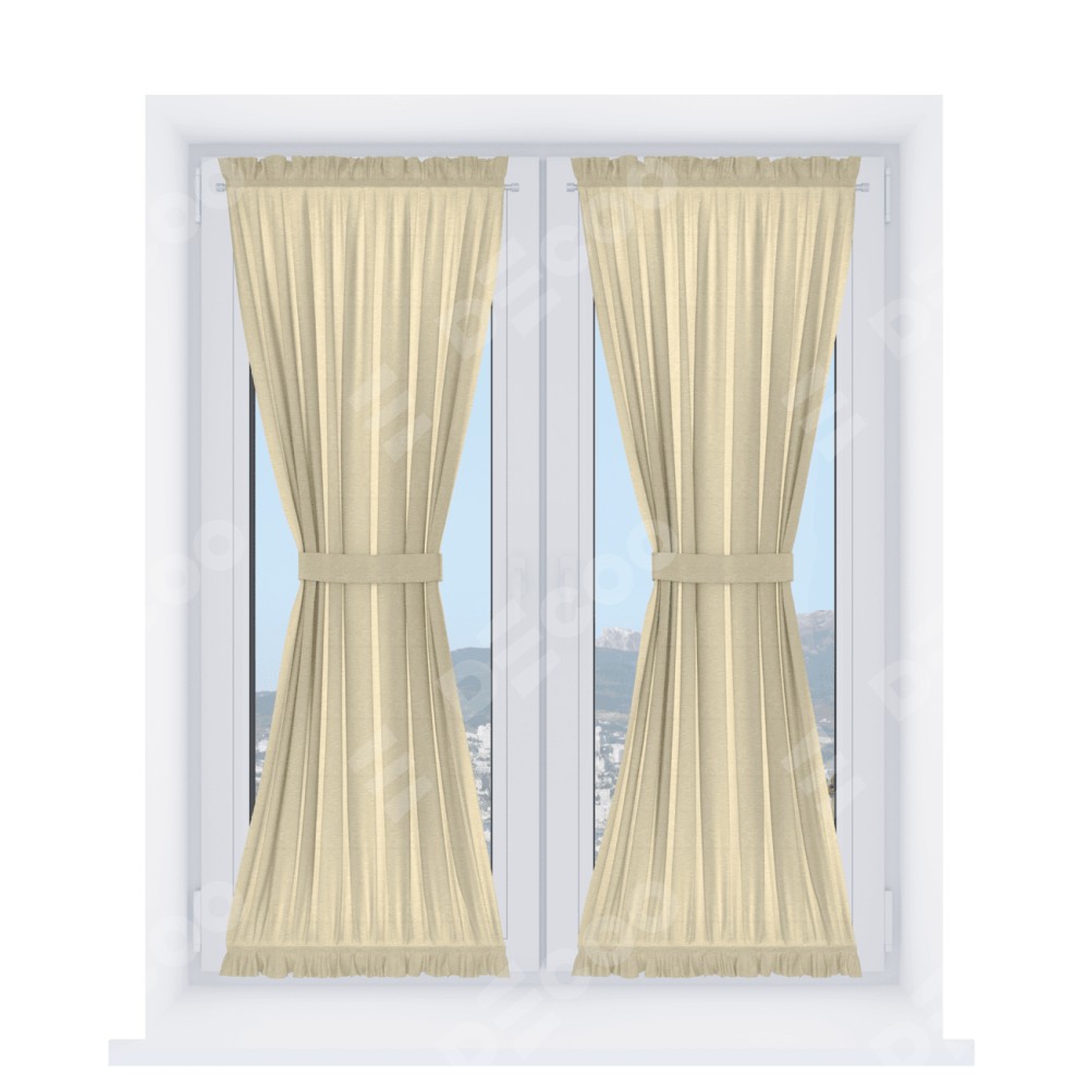 Штора «Песочные часы» производителя «Cortin», используется для створок окон и дверей, пошита из ткани софт однотонный светло-бежевый, артикул ткани 54426.