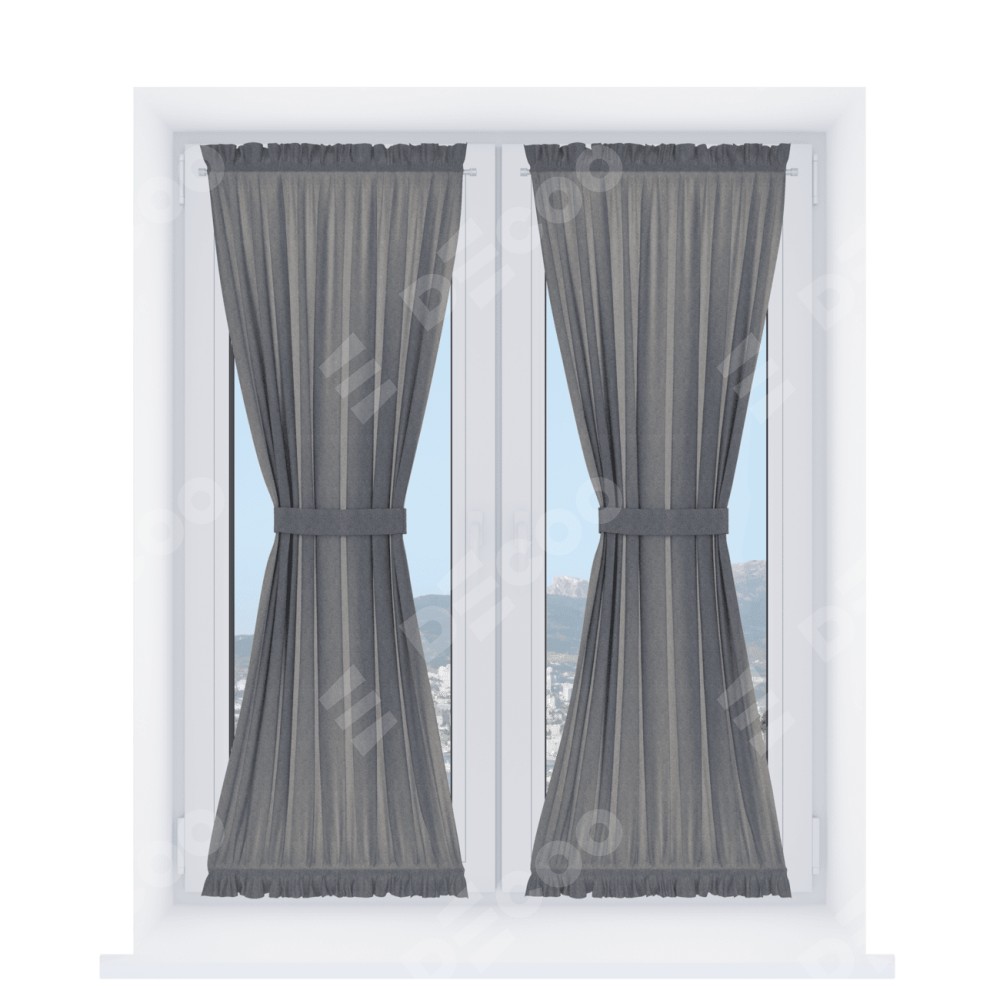 Штора «Песочные часы» производителя «Cortin», используется для створок окон и дверей, пошита из ткани софт однотонный серый, артикул ткани 70605.