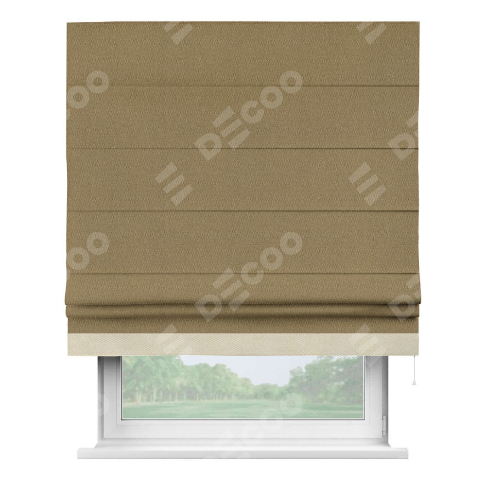 Римская штора «Кортин» с кантом Джестер, для проема, ткань лён димаут, оливковый
