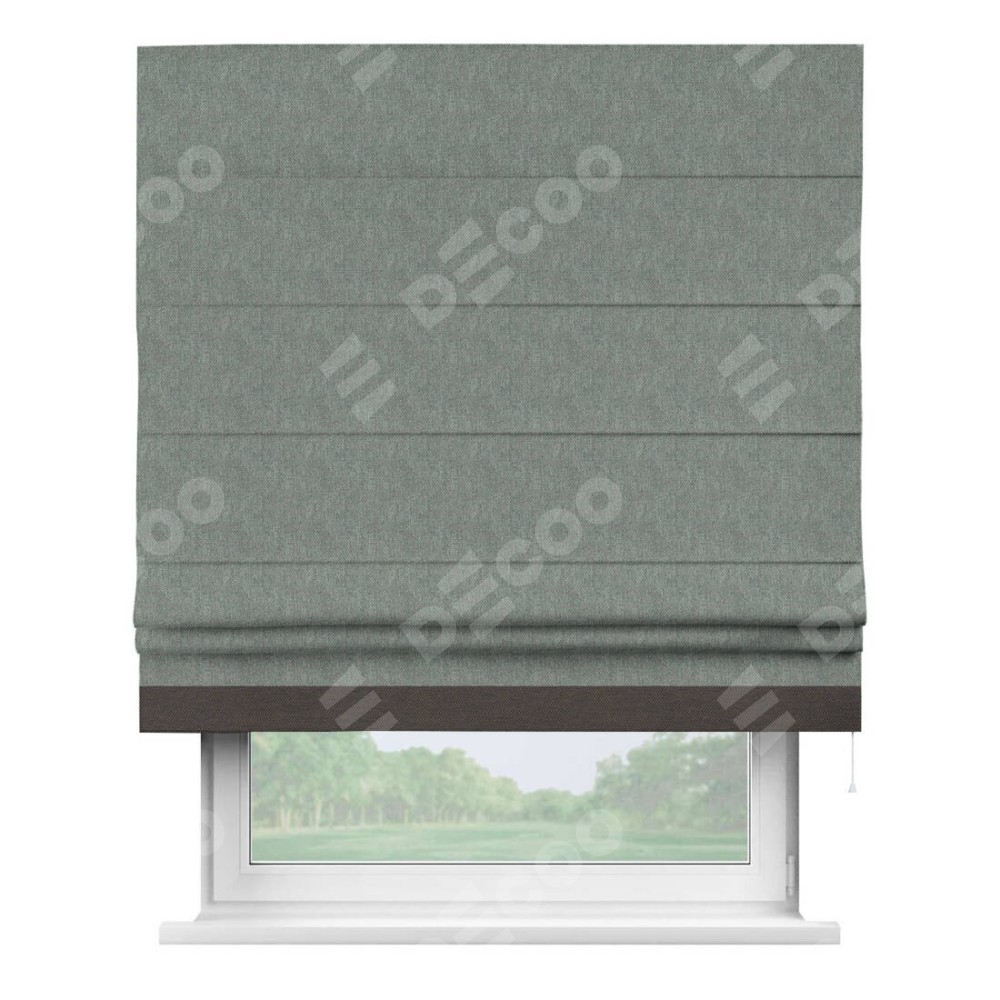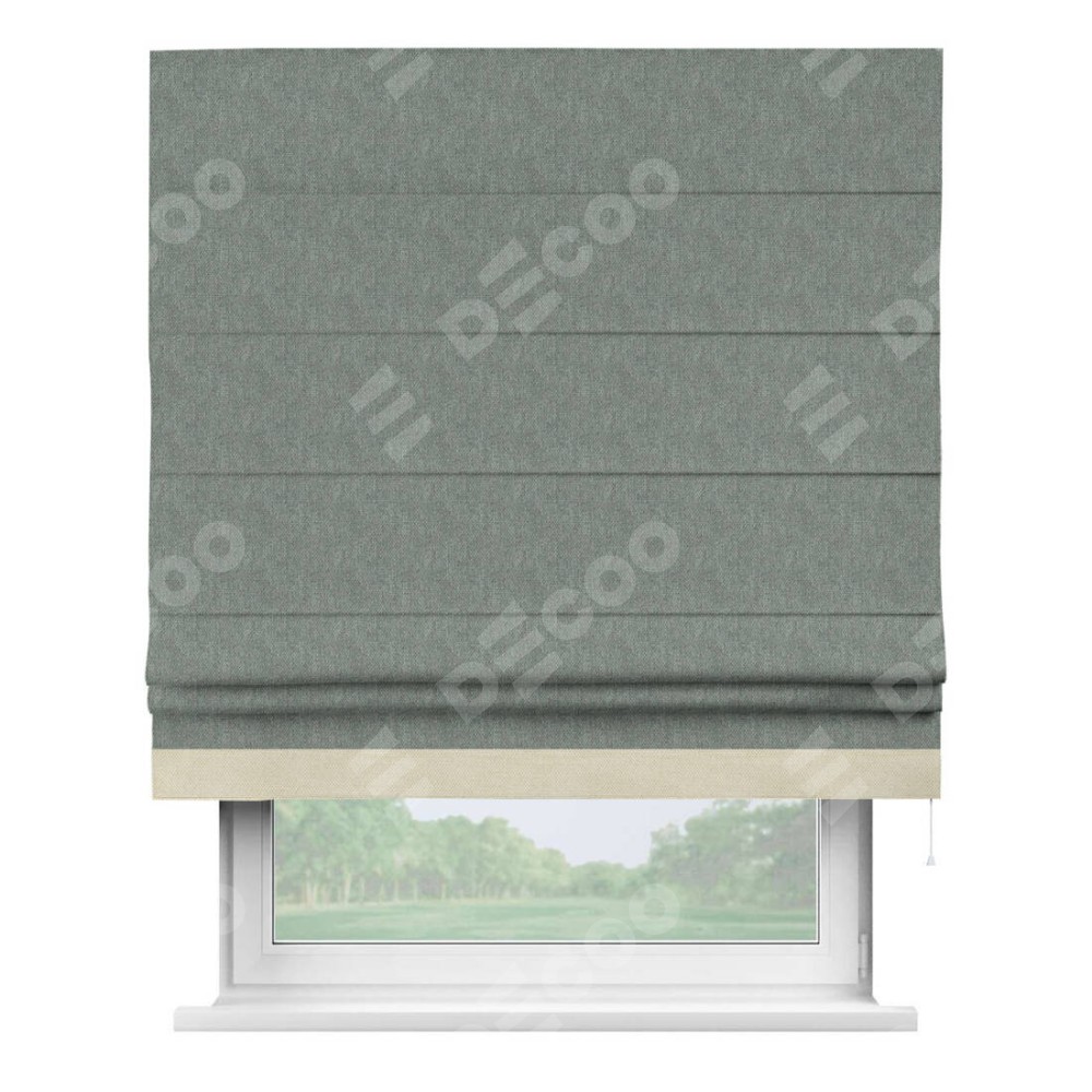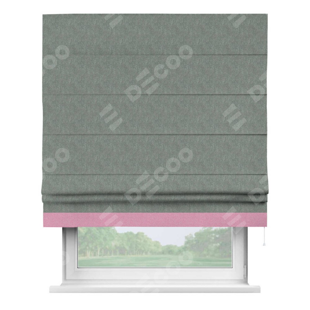 Римская штора производителя «Cortin», используется для проёма, пошита из ткани лён димаут серый, артикул 16240. Отделка шторы кантом «Джестер», ткань для канта используется из льна димаут разной расцветки на выбор. Имеет универсальный механизм и подходит для монтажа: на потолок, на стену и в нишу.