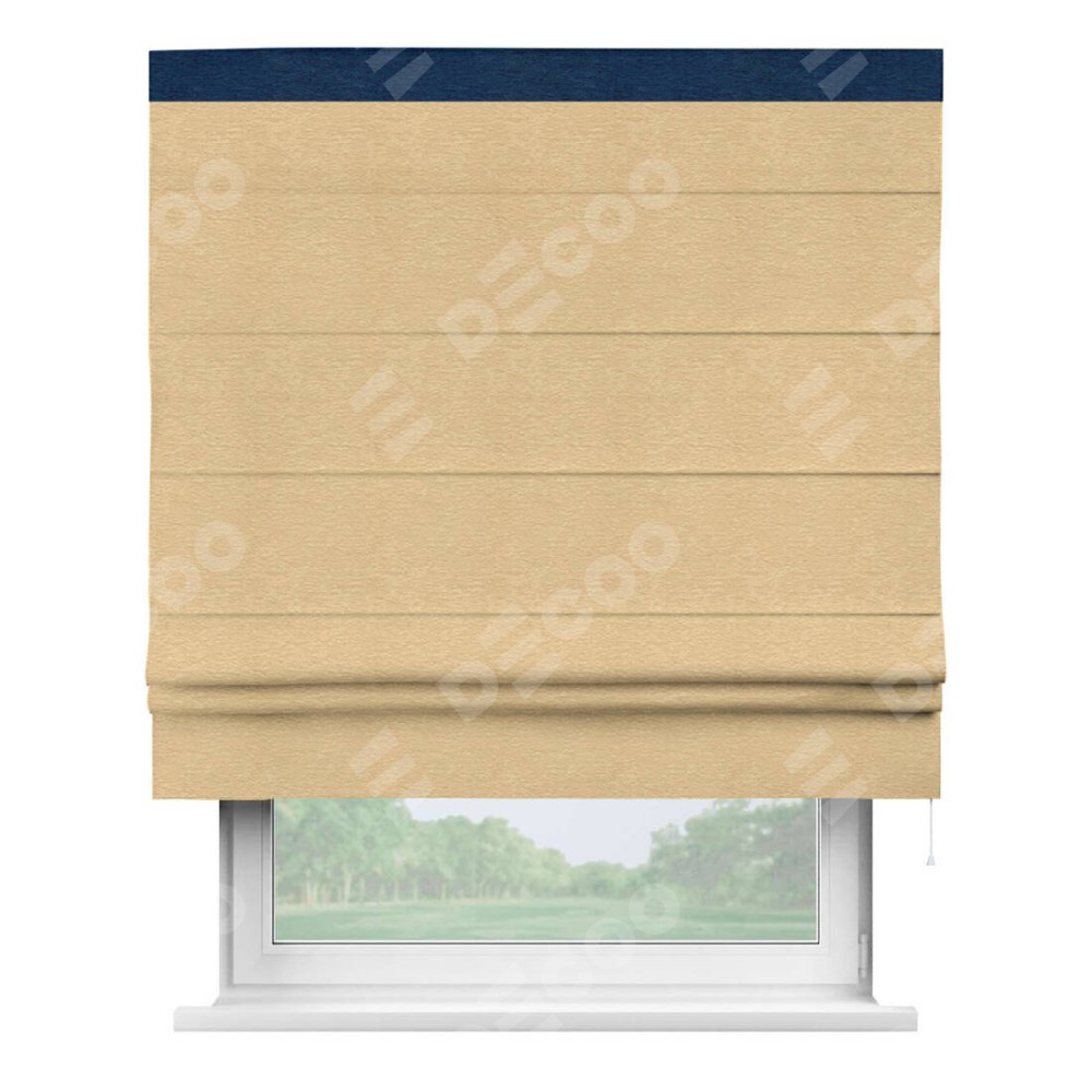 Римская штора производителя «Cortin», используется для проёма, пошита из ткани софт однотонный бежевый, артикул 4202 05. Отделка шторы кантом «Кинг», ткань для канта используется из софта разной расцветки на выбор. Имеет универсальный механизм и подходит для монтажа: на потолок, на стену и в нишу.