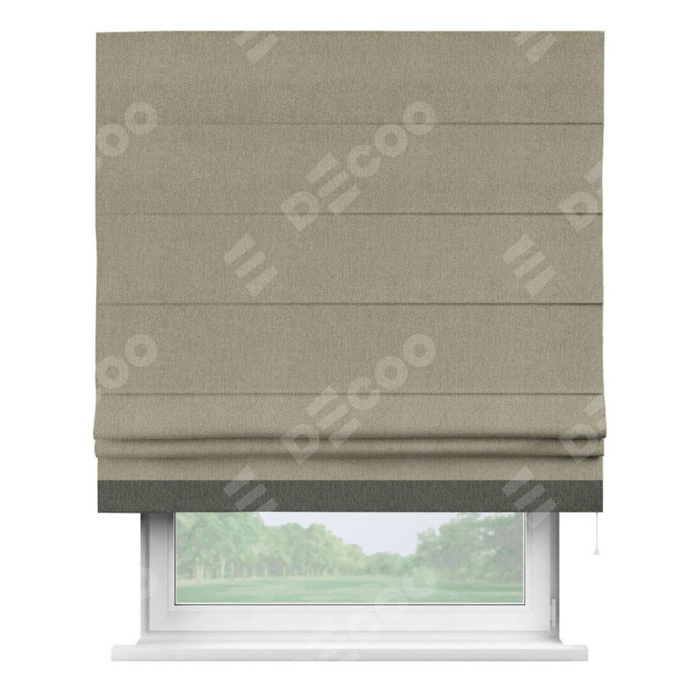 Римская штора производителя «Cortin», используется для проёма, пошита из ткани твид блэкаут кофе, артикул 21575. Отделка шторы кантом «Джестер», ткань для канта используется из твида разной расцветки на выбор. Имеет универсальный механизм и подходит для монтажа: на потолок, на стену и в нишу.