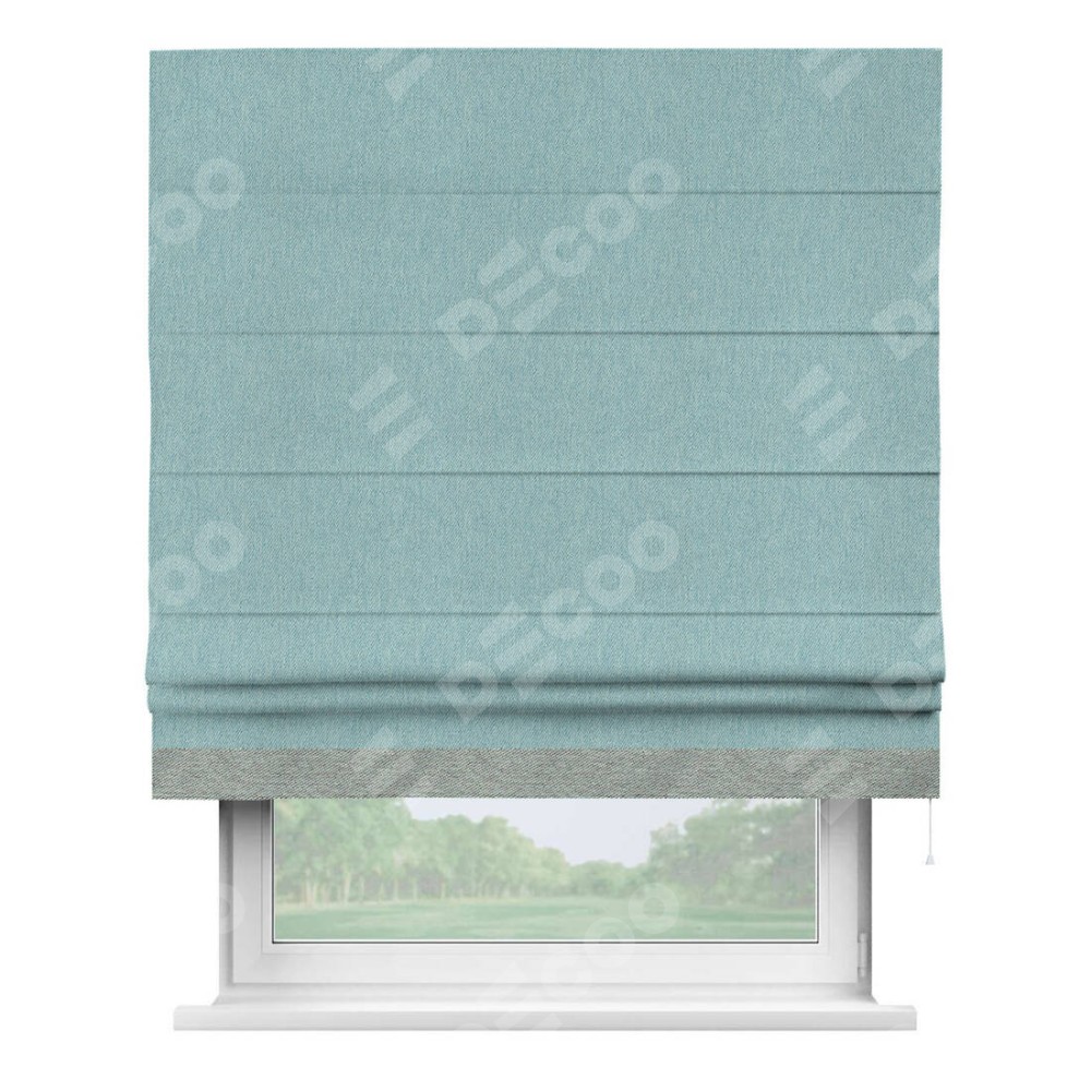 Римская штора «Кортин» с кантом Джестер, для проема, ткань твид блэкаут, небесно-голубой