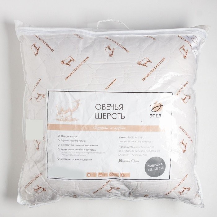 Наполнитель состоит из овечьей шерсти и нежнейшего лебяжьего пуха. Подушка не только обеспечивает правильное положение тела ночью, но и:
