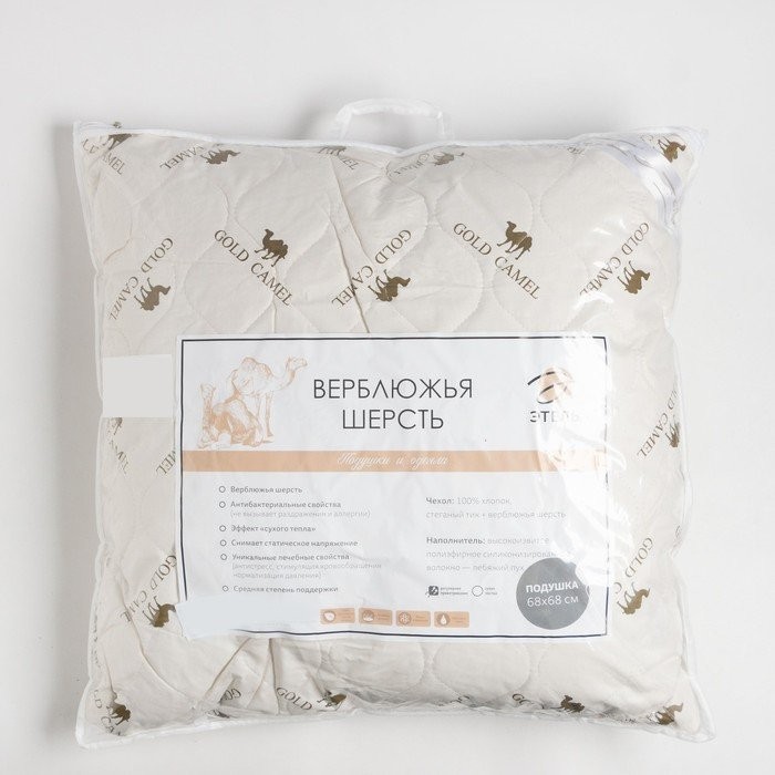 Нежная, удобная и такая красивая подушка «Этель» Верблюжья шерсть подарит вам только добрые сновидения и по-настоящему прекрасное утро.
