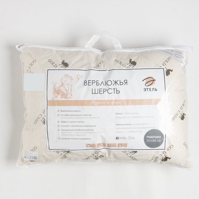 Подушка состоит из наполнителя из верблюжьей шерсти и нежнейшего лебяжьего пуха. Подушка не только обеспечивает правильное положение тела ночью, но и: