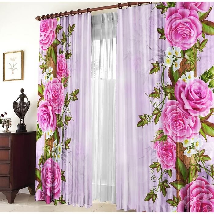 Комплект штор Китайские розы 150×270 +/- 3см 2шт, габардин, п/э