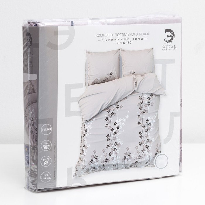 Постельное бельё «Этель» евро Черничные ночи (вид 2), размер 200×217 см, 240*220 см, 70×70 — 2 шт., 100% хлопок, поплин, 125 г/м2
