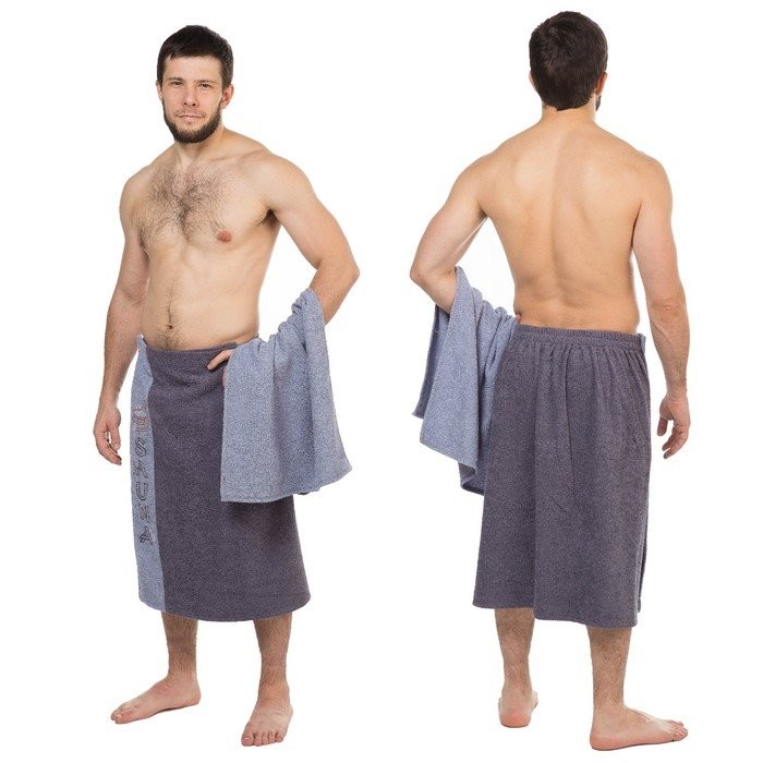 Набор д/сауны махр. муж. (Килт (юбка) (70×160±2), полотенце 50×90), цвет серый