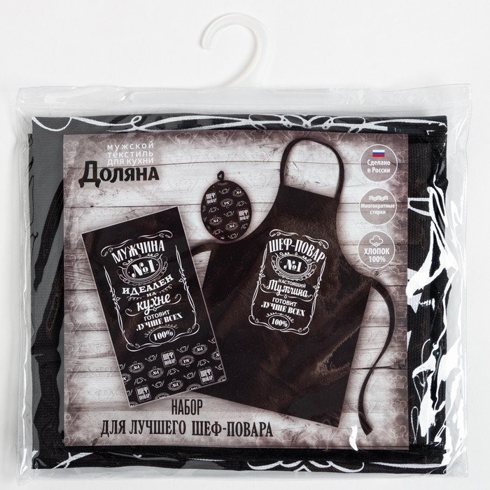 Кухонный набор 3 пр. «Шеф-повар №1» фартук 60×70 см, прихватка 20×20 см, полотенце 35×60 см