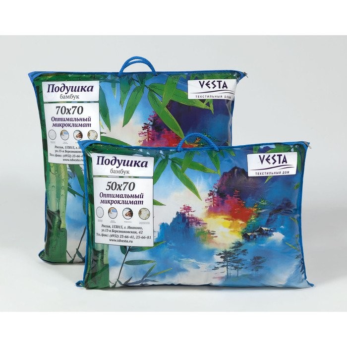 Подушка стёганная 50×70 см, бамбуковое волокно, ткань тик, п/э 100%