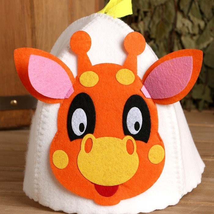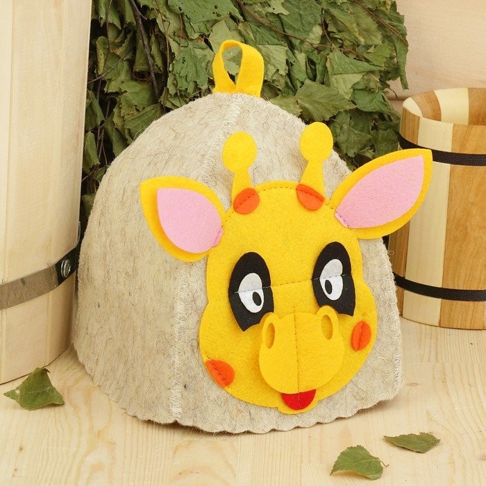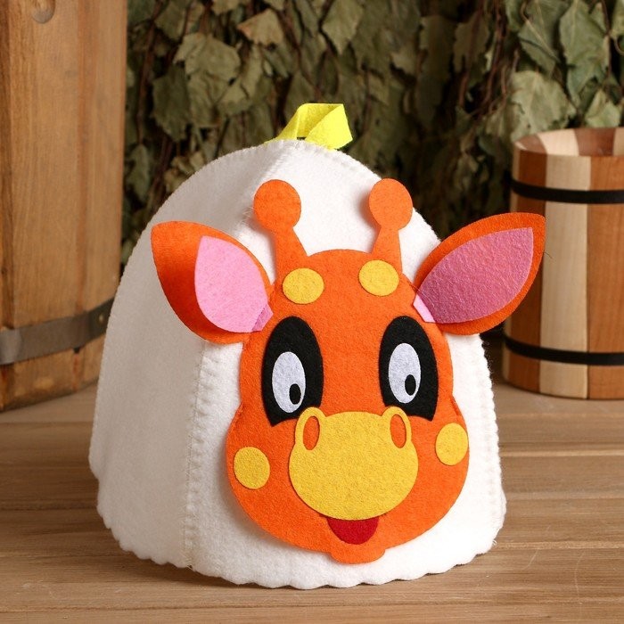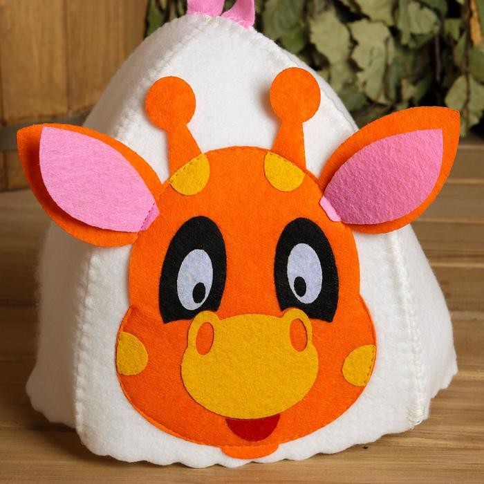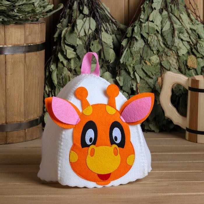 Шапка для бани с детской аппликацией «Жирафик» войлок